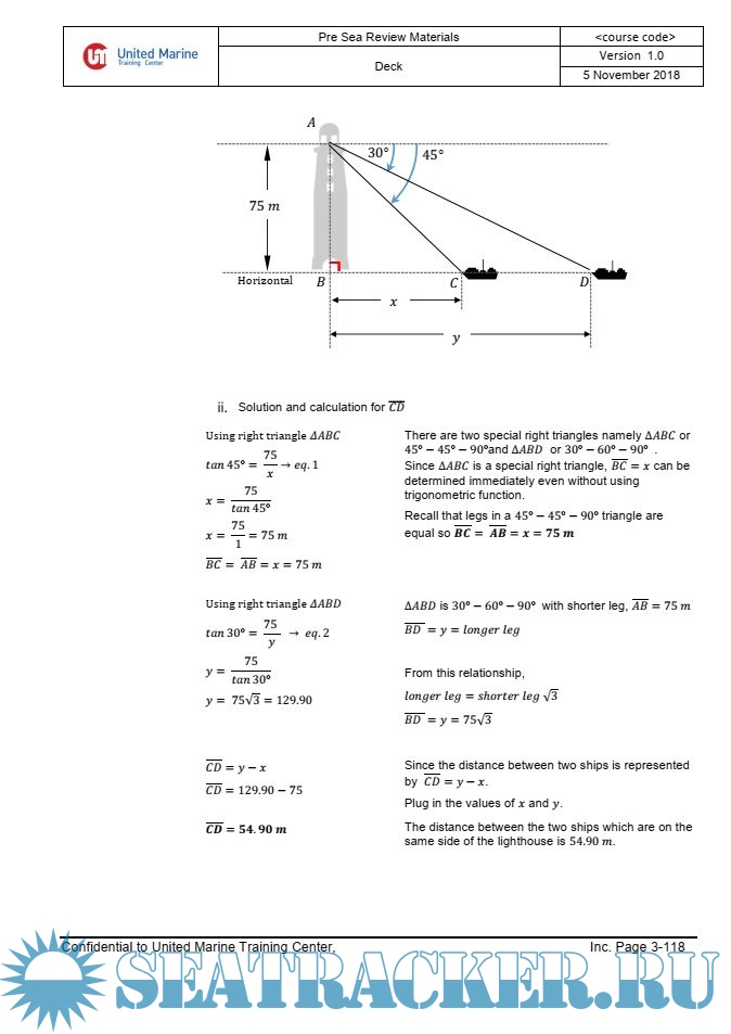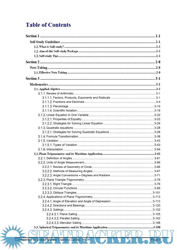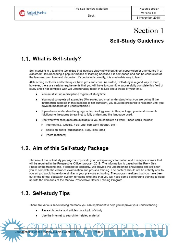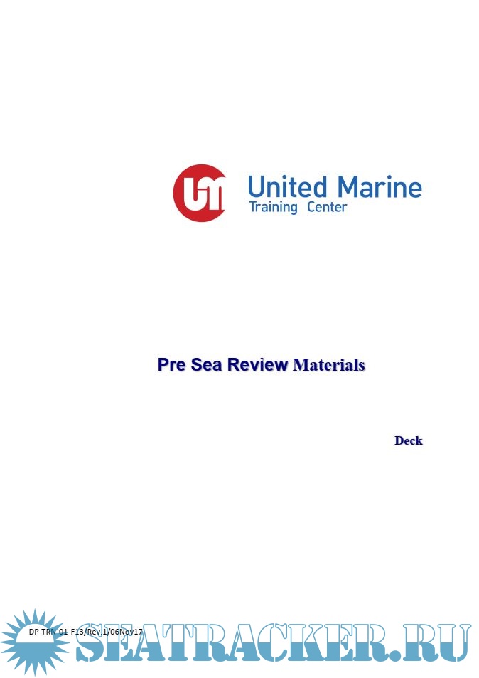 This Pre Sea Review Materials contains Self-study package for Deck department recipients. It was developed by United Marine Training Center of Philippines.