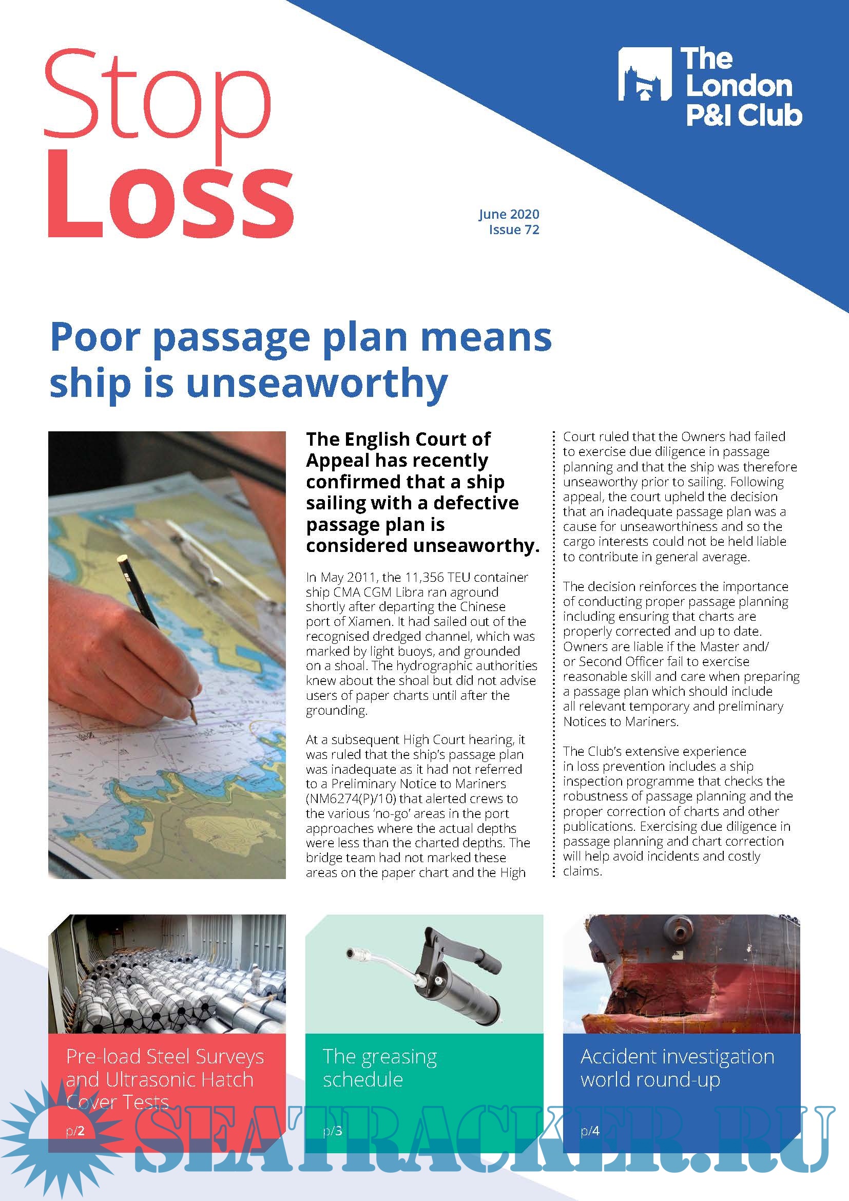 StopLoss 71 Coal Cargoes – expert guidance StopLoss 72 Poor Passage Plan means ship is unseaworthy