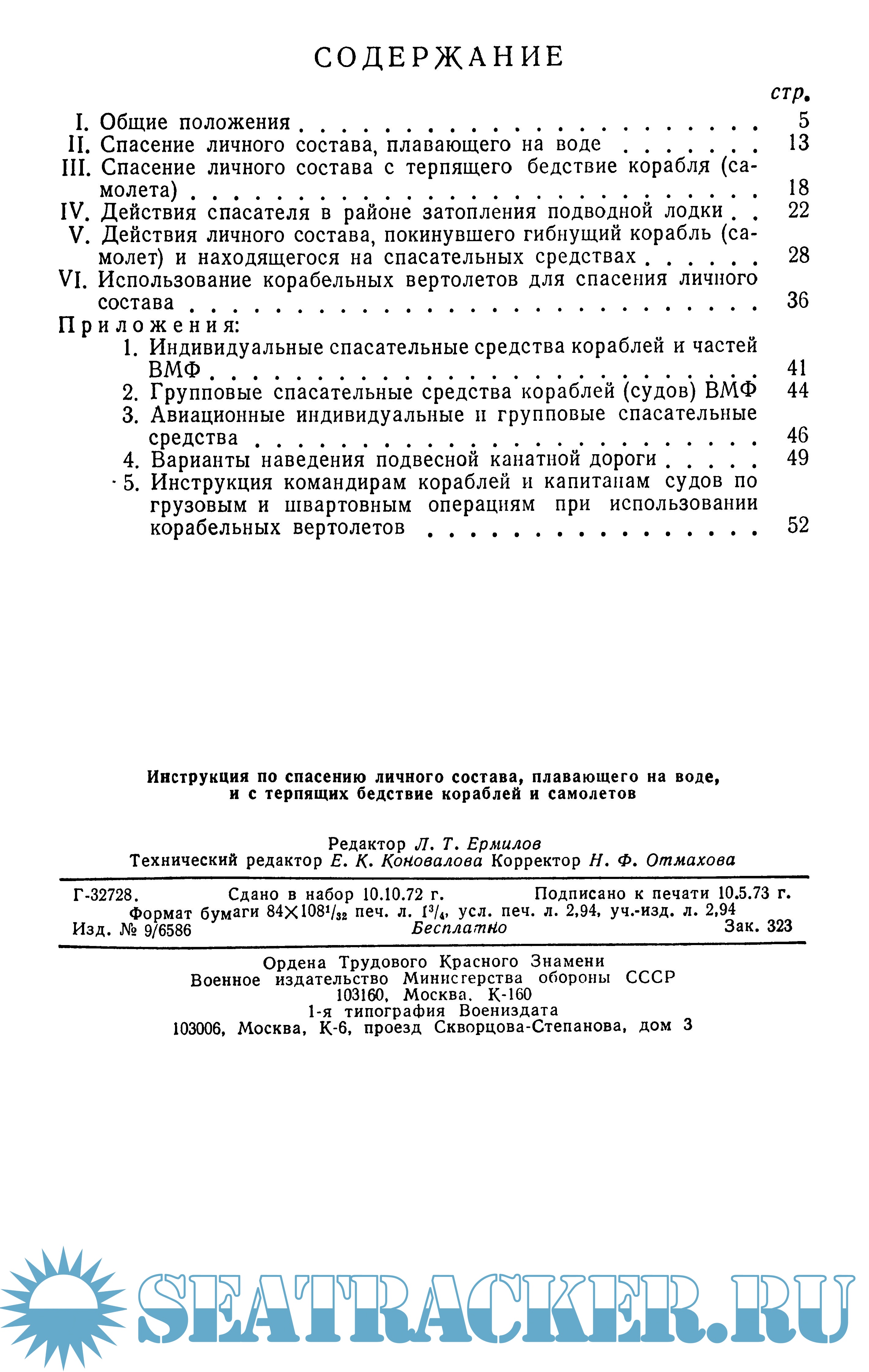 Горшков Г., Сергеев Н. Инструкция по спасению личного состава, плавающего на воде, и с терпящих бедствие кораблей и самолетов, 1973.djvu
