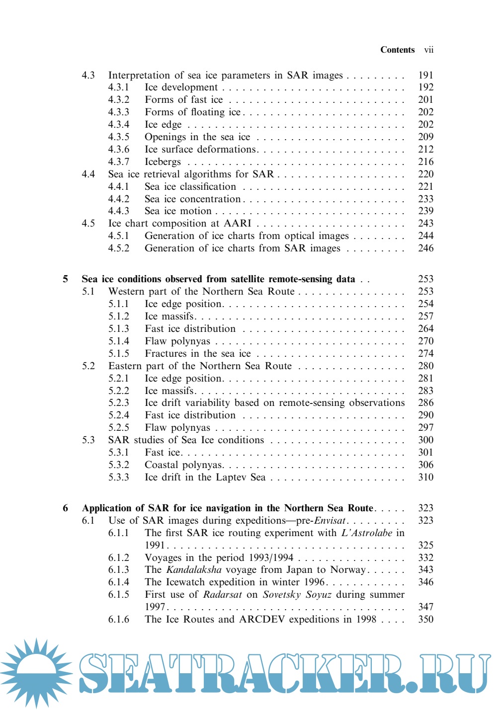 Year: 2007 Language: english Author: Johannessen O.M. at all Genre: Reference book Publisher: Springer-Verlag Berlin Heidelberg ISBN: 978-3-540-48840-8 Format: PDF Quality: Scanned pages Pages count: 563 Description: Remote Sensing of Sea Ice in the Northern Sea Route: Studies and Applications Professor Ola M. Johannessen, Dr. Vitaly Yu. Alexandrov, Professor Ivan Ye. Frolov, Professor Stein Sandven, Mr. Lasse H. Pettersson, Dr. Leonid P. Bobylev, Mr. Kjell Kloster, Dr. Vladimir G. Smirnov, Dr. Yevgeny U. Mironov, Mr. Nikolay G. Babich (auth.) Remote Sensing of Sea Ice in the Northern Sea Route: Studies and Applications initially provides a history of the Northern Sea Route as an important strategic transport route for supporting the northern regions of Russia and cargo transportation between Europe and the Northern Pacific Basin. The authors then describe sea ice conditions in the Eurasian Arctic Seas and, using microwave satellite data, provide a detailed analysis of difficult sea ice conditions. Remote sensing techniques and the basic principles of SAR image formation are described, as well as the major satellite radar systems used for ice studies in the Arctic. The authors take a good look at the use of sensing equipment in experiments, including the ICE WATCH project used for monitoring the Northern Sea Route. The possibilities of using SAR remote sensing for ice navigation in the Northern Sea Route is also detailed, analysing techniques of automatic image processing and interpretation. A study is provided of regional drifting ice, fast ice and river ice in the coastal areas of the Arctic Seas. The book concludes with a review of the practical experience using SAR images for supporting navigation and offshore industrial activity, based on a series of experiments conducted with the Murmansk Shipping Company on board nuclear icebreakers.