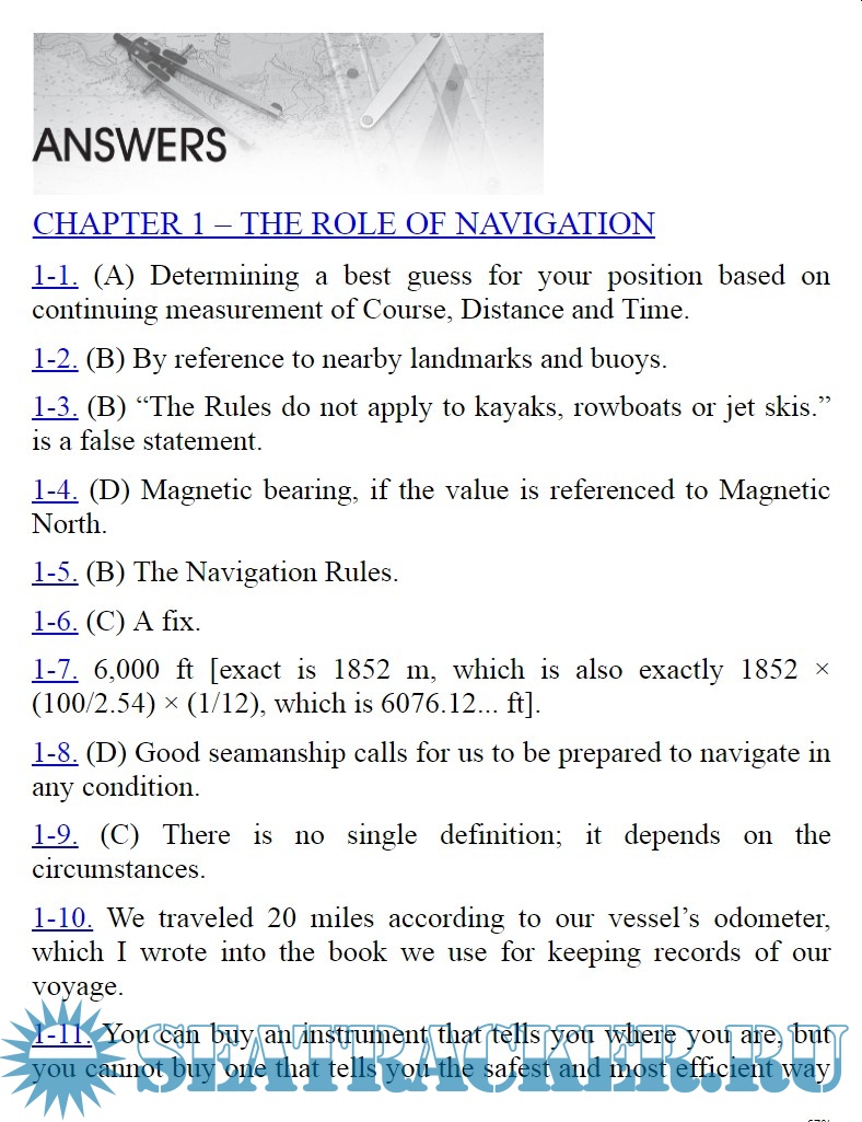 This manual is a complete, rich and exhaustive collection of exercises, designed to improve navigation skills in both routine and special circumstances. A large amount of practical exercises, along with answers and numerical solutions is provided, on chart reading and plotting, position fixing, dead reckoning, compass work, and the use of special publications such as Chart Catalogs, Tide Tables, Current Tables, Light Lists, Notices to Mariners, Chart No. 1, Navigation Rules, and U.S. Coast Pilots. Divided into specific chapters, each one concerning a specific aspect of navigation, they can be considered as the tutorial part of a navigation course or used individually, and the book, along with a text manual, would make up a self-study course.