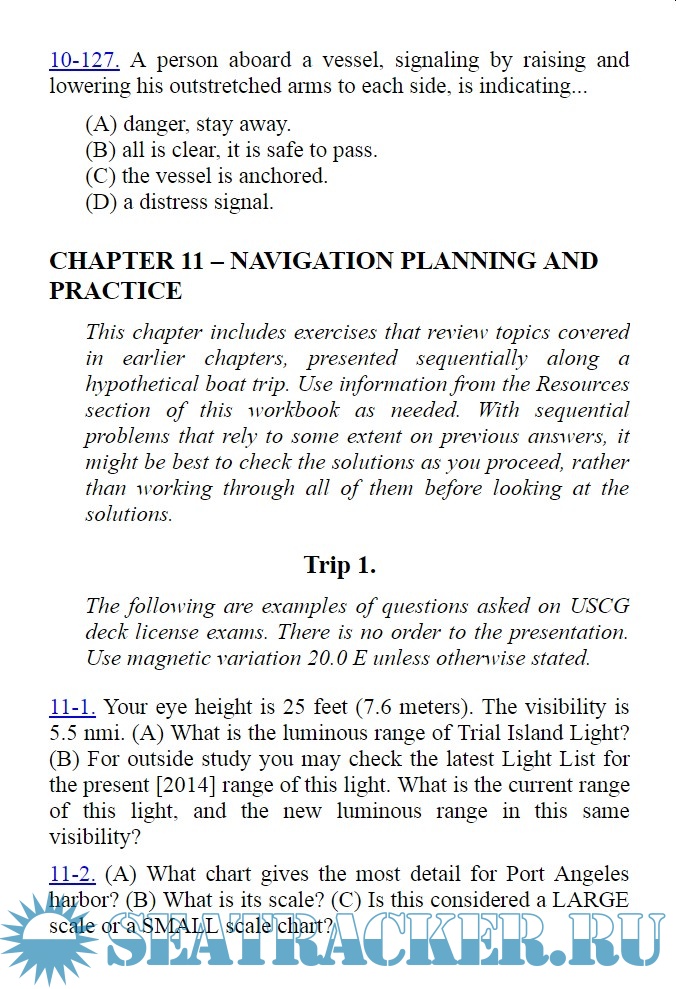 The level of these exercises is about that required in the USCG Masters license exam for 100 GT, about the same used in coastal navigation certification exams from the U.S. Sailing Association, American Sailing Association, Royal Yachting Association, and the Canadian Yachting Association.