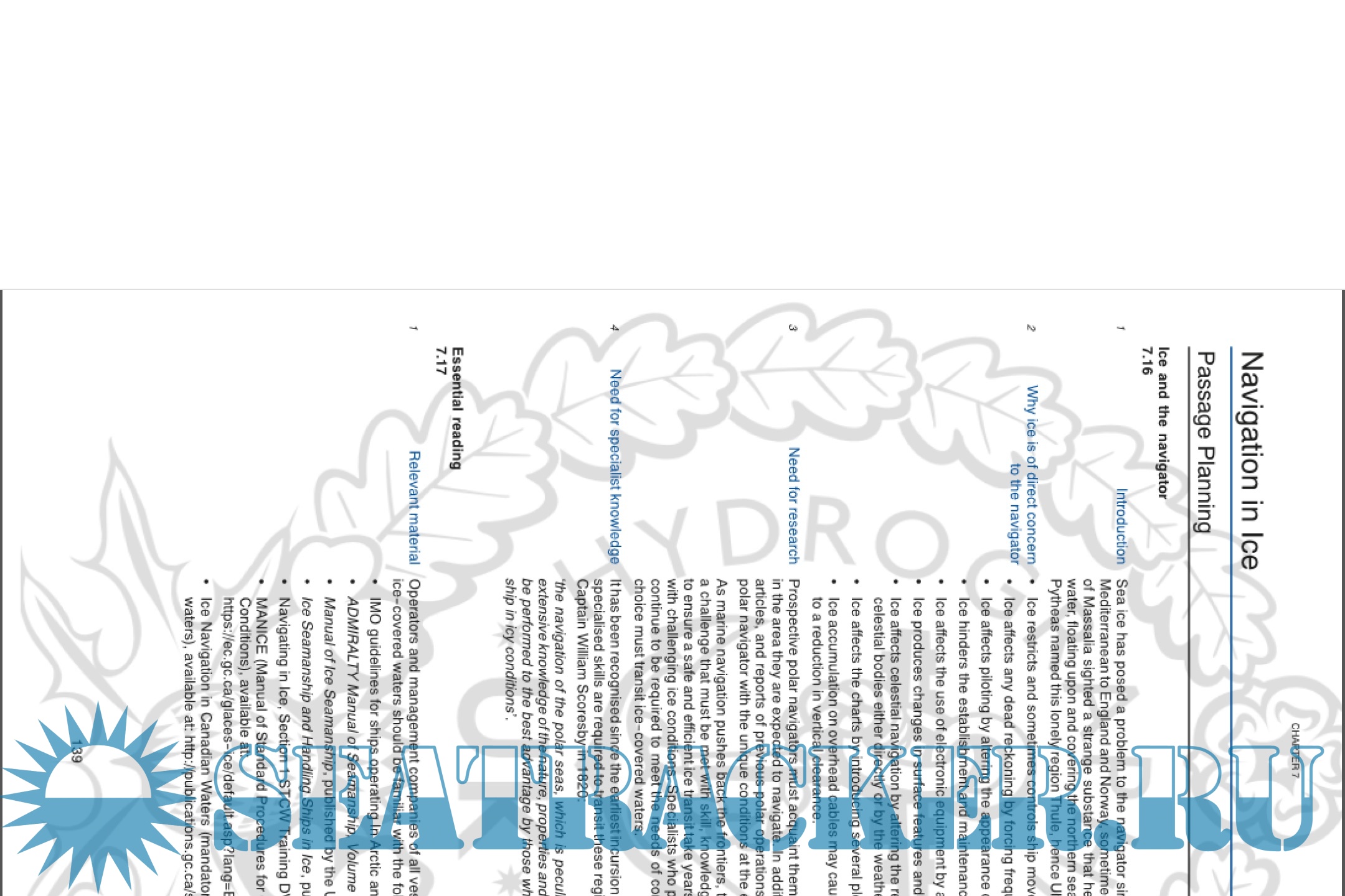 ​​​​Guidance to assist mariners in navigational training and active bridge procedures. Information includes charts and their use, the communication of navigational information, the maritime environment, restrictions to navigation and maritime pollution and conservation.