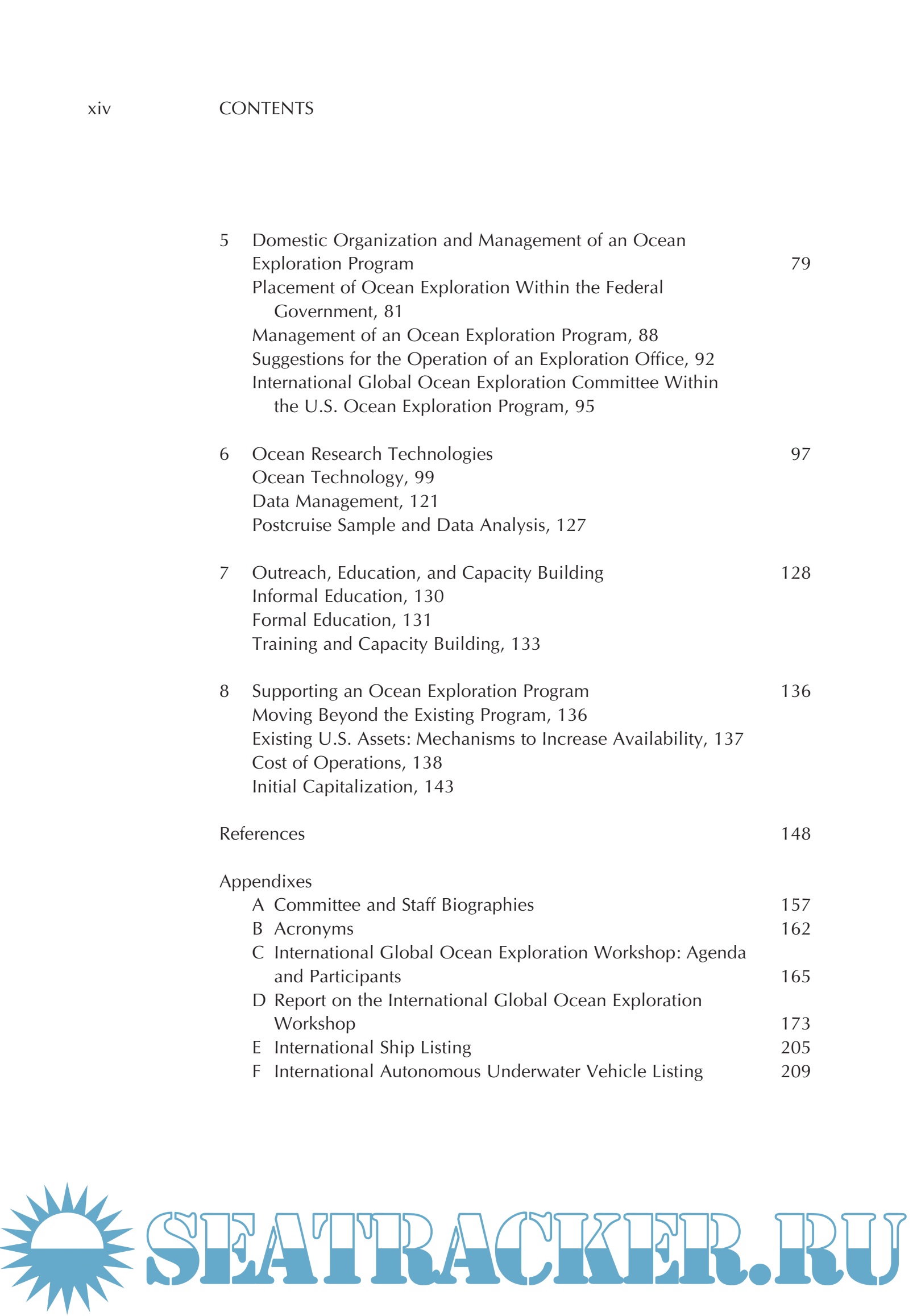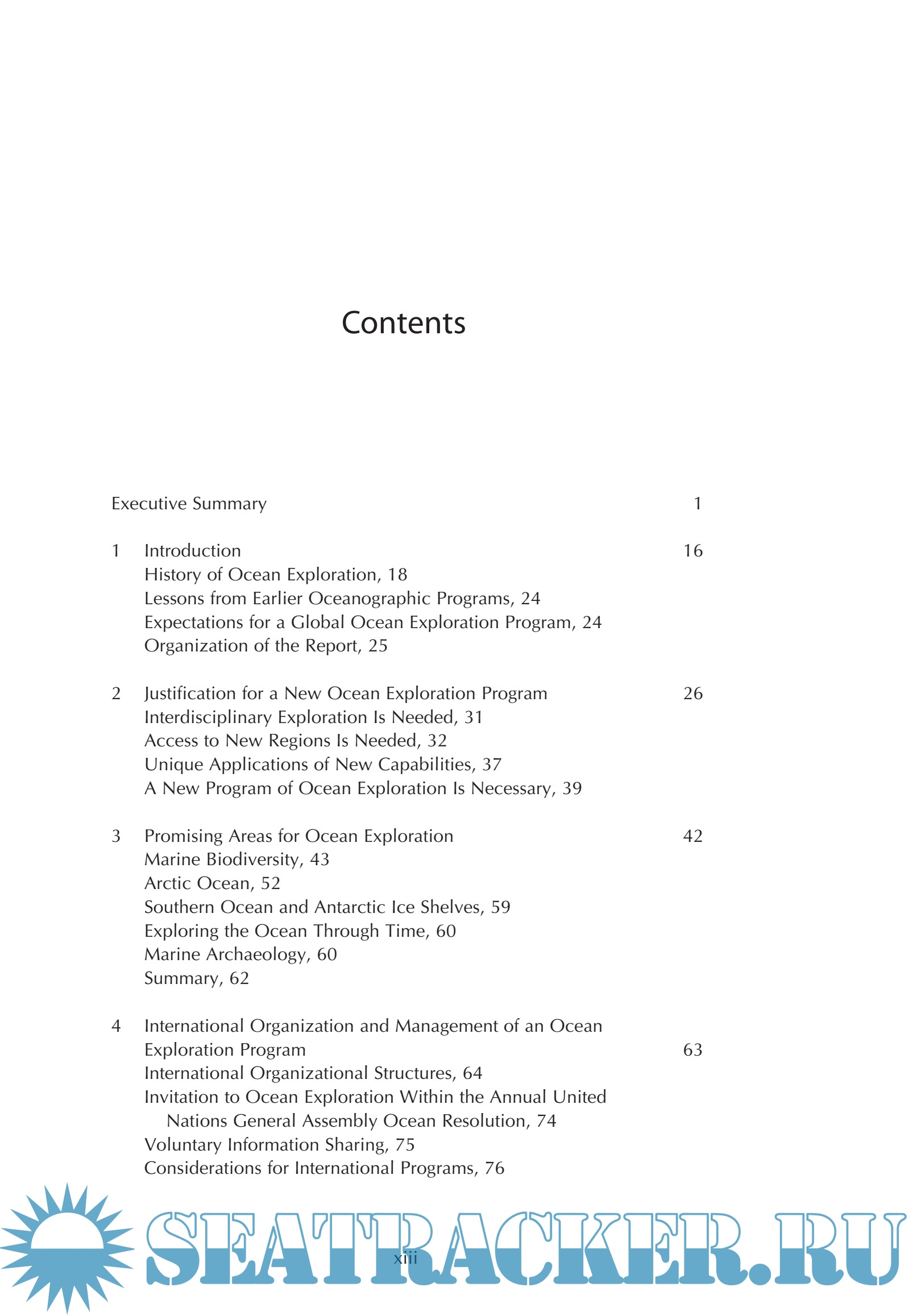 Year: 2003 Language: english Author: Committee on Exploration of the Seas Genre: Research papers Publisher: National Research Council ISBN: 0309089271 Format: PDF Quality: Scanned pages Pages count: 228 Description: In the summer of 1803, Thomas Jefferson sent Meriwether Lewis and William Clark on a journey to establish an American presence in a land of unqualified natural resources and riches. Is it fitting that, on the 200th anniversary of that expedition, the United States, together with international partners, should embark on another journey of exploration in a vastly more extensive region of remarkable potential for discovery. Although the oceans cover more than 70 percent of our planet's surface, much of the ocean has been investigated in only a cursory sense, and many areas have not been investigated at all. "Exploration of the Seas" assesses the feasibility and potential value of implementing a major, coordinated, international program of ocean exploration and discovery. The study committee surveys national and international ocean programs and strategies for cooperation between governments, institutions, and ocean scientists and explorers, identifying strengths, weaknesses, and gaps in these activities. Based primarily on existing documents, the committee summarizes priority areas for ocean research and exploration and examines existing plans for advancing ocean exploration and knowledge.