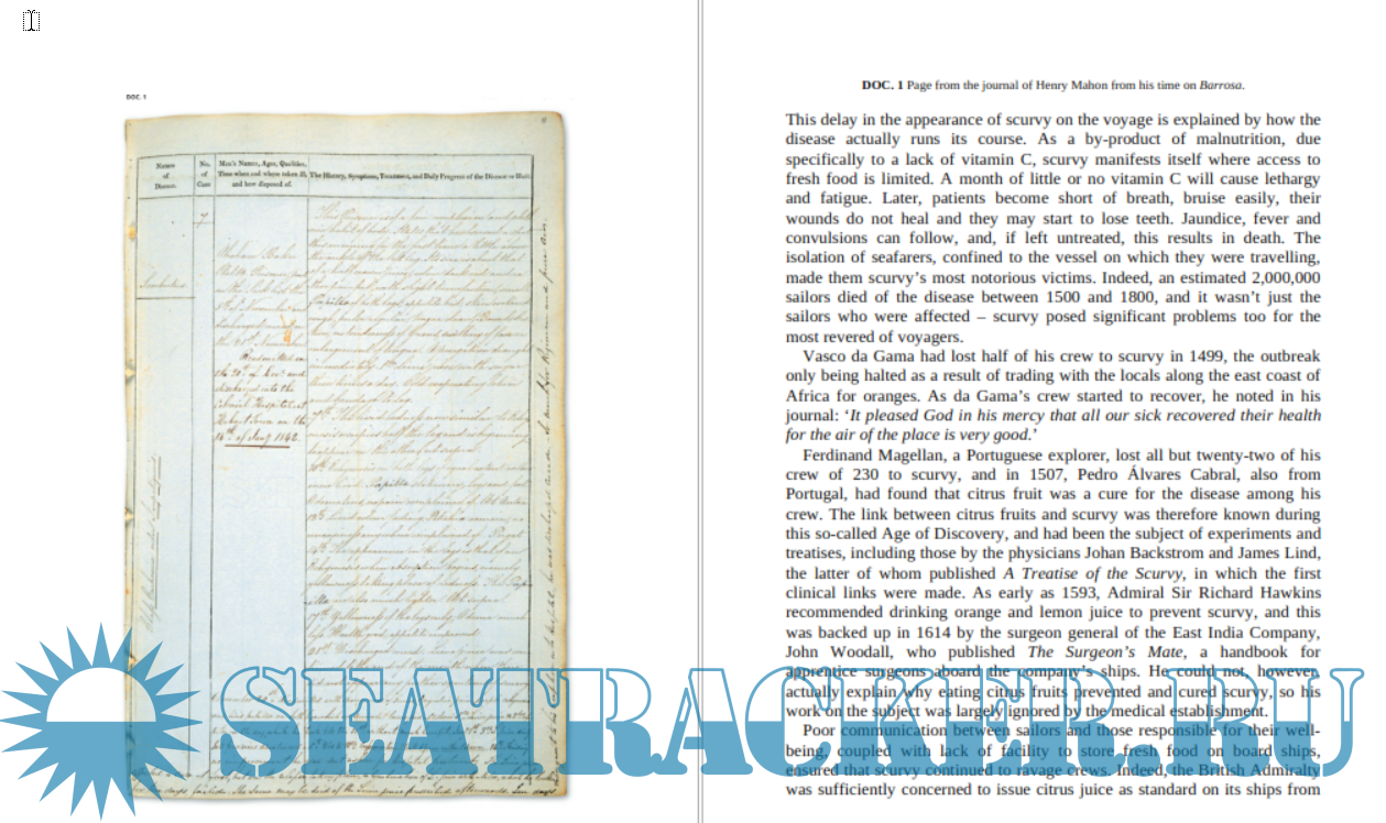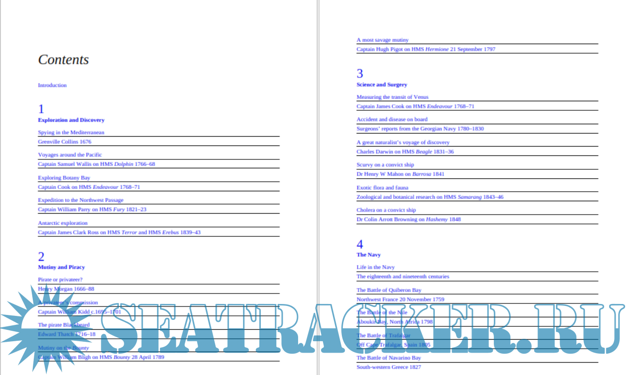Year: 2017 Language: english Author: The National Archives Genre: History Publisher: Adlard Coles Nautical ISBN: 9781472948663, 9781472948670 Format: PDF Quality: eBook Pages count: 322 Description: For centuries, ships' commanders kept journals that recorded their missions. These included voyages of discovery to unknown lands, engagements in war and sea and general trade. Many of their logs, diaries and letters were lodged at The National Archives and give a vivid picture of the situations that they encountered. Entries range from Captain James Cook's notes of his discovery of the South Pacific and Australia, to logs of the great naval battles, such as Trafalgar and the Battle of the Nile. From the ships that attempted to stop piracy in the Caribbean, to the surgeons who recorded the health of the men they tended and naturalists who noted the exotic plants and animals they encountered, comes a fascinating picture of life at sea, richly illustrated with maps, drawings and facsimile documents found alongside the logs in the archives.