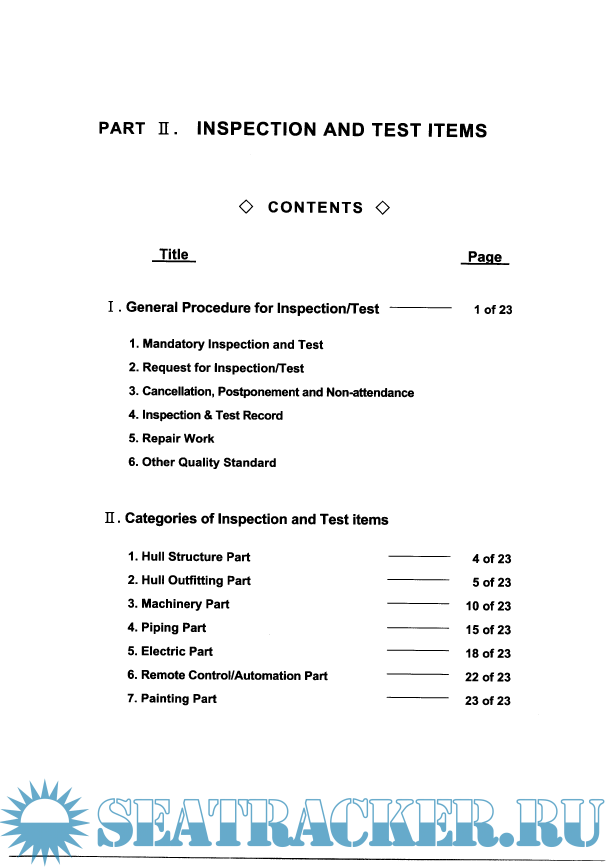 Part 2 -- Inspection and test items