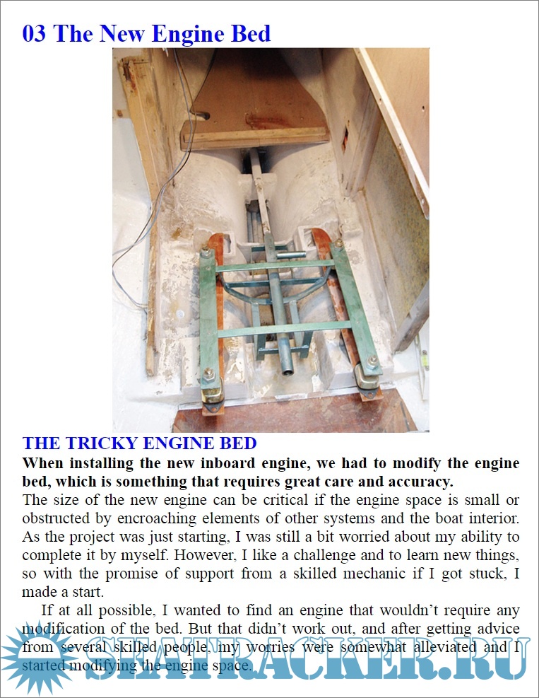 Description: The key about replacing the engine is planning, what worrying about through each stage of the job, and making decisions about how to do it. This book is a projec log, and manages to make a complicated, risky task, an easy-to-follow and fun project, to be carried out alone or with the help of some friends. What seems complex and technically advanced is explained, so that it is within everyone's reach, with a minimum of manual skills. Adaptations to fiberglass structures, repairs with epoxy, alignments and tolerances, electrical circuits, design and maintenance of tanks are explained in a simple and direct way. Topics also cover engine specification and a guide to buy a new engine, engine-gearbox combination, propeller choice, cost planning and budget, maintenance cost and overall price, engine's bed adaption, spare parts, exhaust system, bilge pumps, fuel tanks among others.