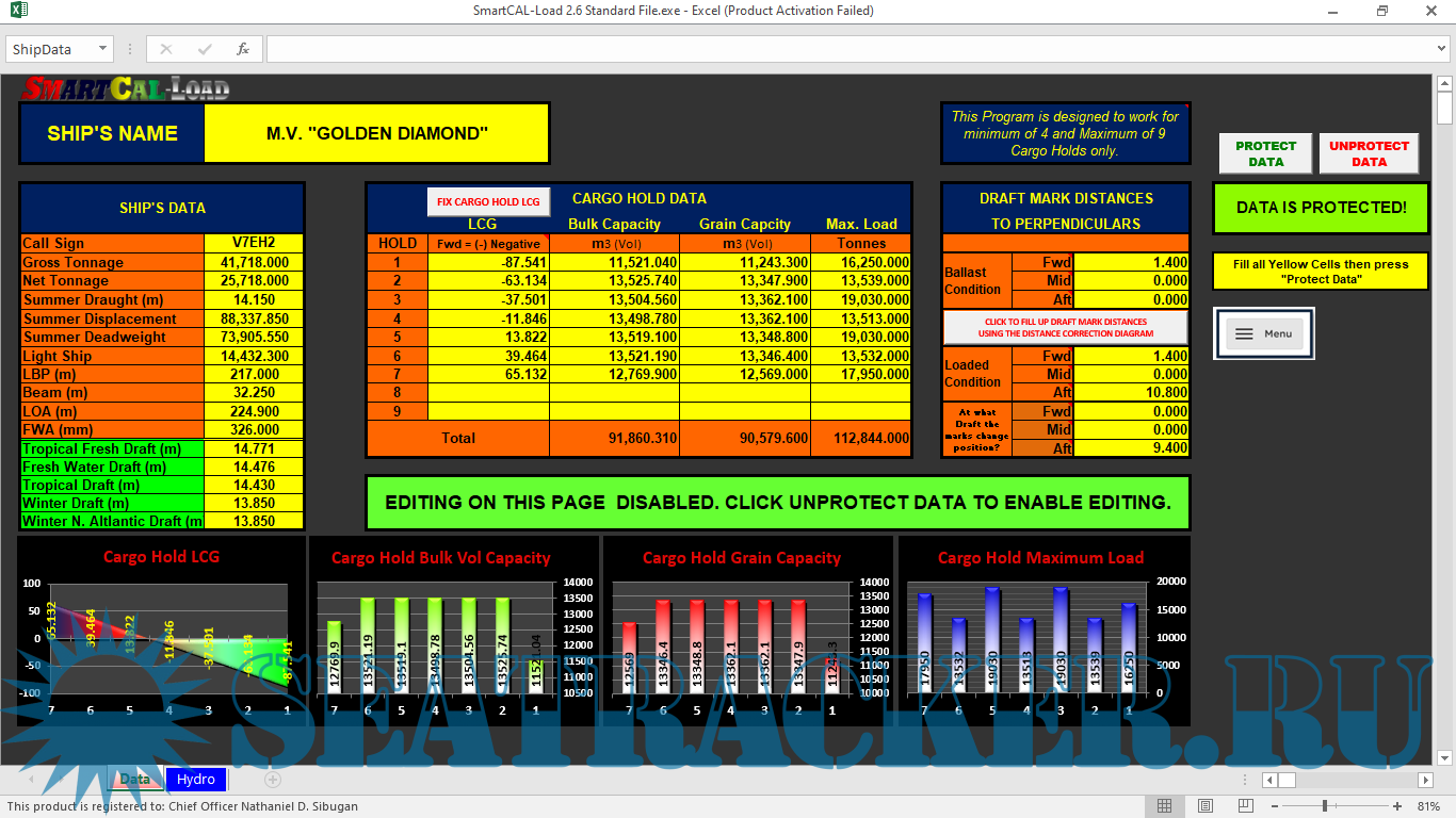 Draft Survey and Trimming Assistant on Excel for Bulk Carriers and General Cargo v.2.0 - Mederic R.…