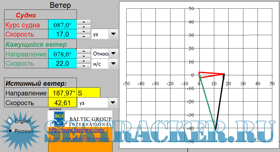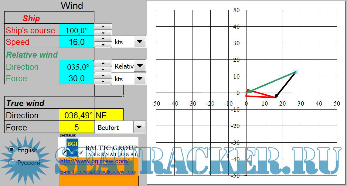 EXCEL True Wind Calculation / Расчет истинного ветра в Excel [2017]