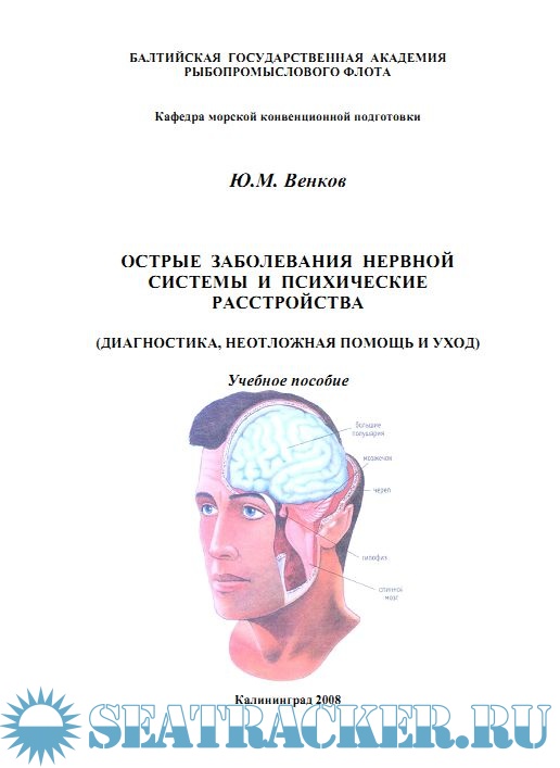 Год выпуска: 2008 Язык: русский Автор: Ю. Венков Жанр: Пособие Издательство: БГА РФ, Калининград Серия: Учебное пособие Формат: PDF Качество: Изначально компьютерное (eBook) Количество страниц: 70 Описание: Учебное пособие для слушателей курсов подготовки командного состава судов. В учебном пособии рассматриваются вопросы диагностики, неотложной помощи и ухода при острых заболеваниях нервной системы и психических расстройствах. Пособие разработано в соответствии с программой «Медицинский уход на судах». Предназначено для курсов подготовки командного состава судов.