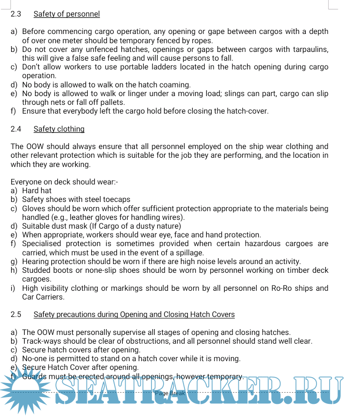 Year: 2005 Language: english Author: Mark mark Genre: Lectures Format: DOC Quality: eBook Pages count: 5 Description: Cargo handling safety on how to handle cargo onboard a vessel.