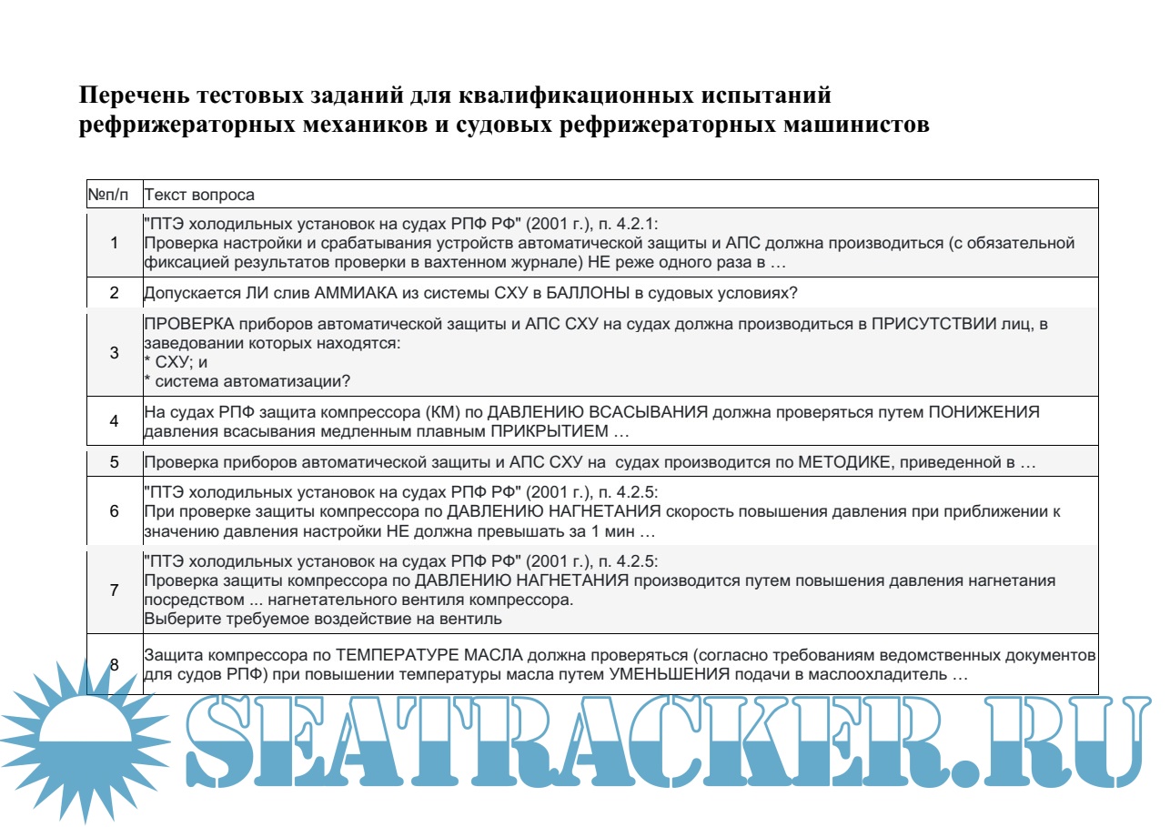 «Конвенция Плюс» представляет собой электронную базу более семи тысяч тестовых заданий для проверки знаний следующих категорий членов экипажей морских судов: