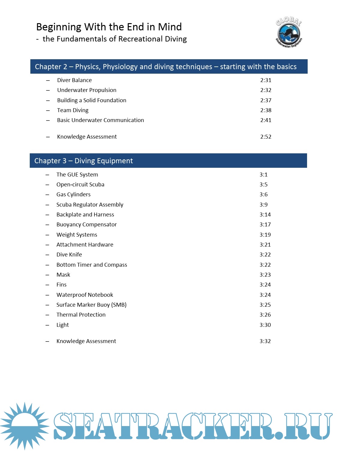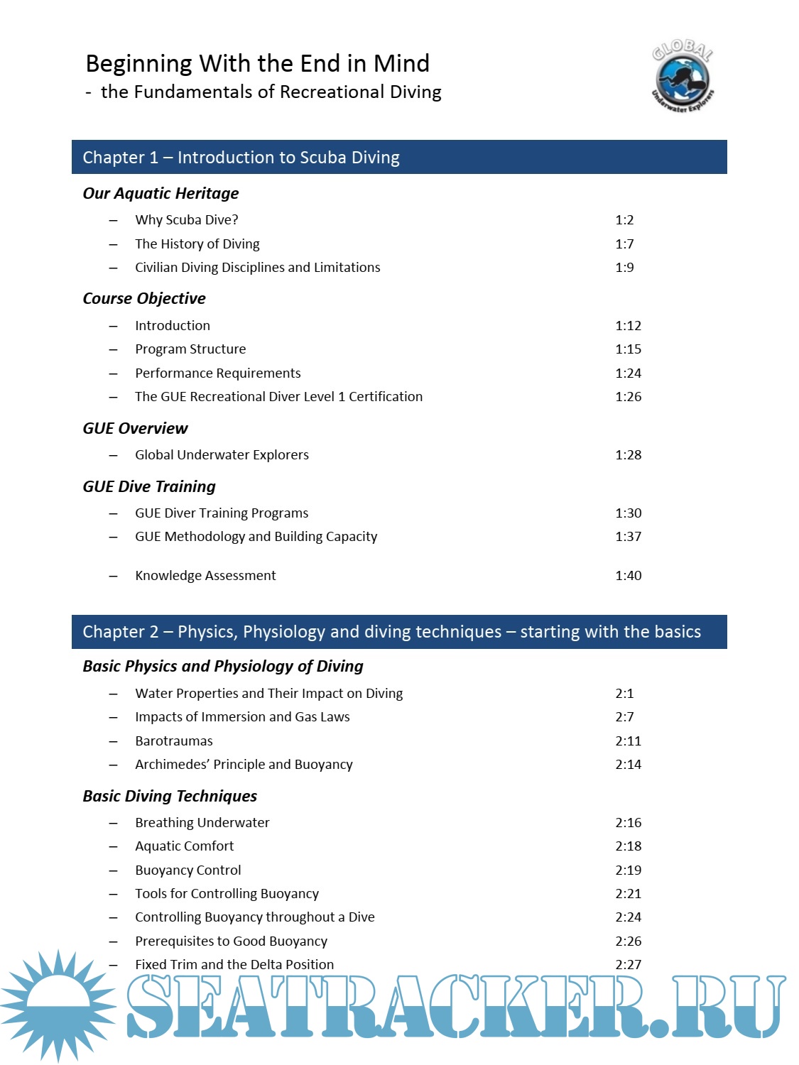 Year: 2009 Language: english Author: Berglund J. Genre: Textbook Publisher: GUE Global Underwater Explorers Format: PDF Quality: Scanned pages Pages count: 503 Description: Written as the Workbook for GUE's Rec 1 course, this work is one in a series of GUE manuals that seek to establish a baseline for fundamental and advanced diving practices. The overriding assumption tying all these together is that there is a baseline of fundamental skills and procedures that promote safe, efficient, and ultimately fun diving.