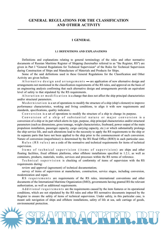 Общие положения о классификационной и иной деятельности / General Regulations for the Classification and Other Activity