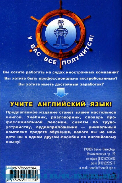 Описание: В учебнике содержатся материалы для обучения чтению, письму, пониманию и владению разговорной речью в пределах бытовой и профессиональной тематики. Аудиоприложение и ключи-ответы к заданиям и упражнениям дают возможность для самостоятельного изучения английского языка. Первая часть учебника рассчитана на всех тех, кто, имея нулевой или начальный уровень знания предмета, решил всерьез заняться его изучением. Вторая часть предназначена для моряков, работающих или желающих работать на судах иностранных компаний. Она содержит учебный и справочный материал о всех видах судовых работ, несении вахт, об особенностях работы на судах под иностранным флагом, образец контракта и резюме, а также адреса некоторых крюинговых компаний