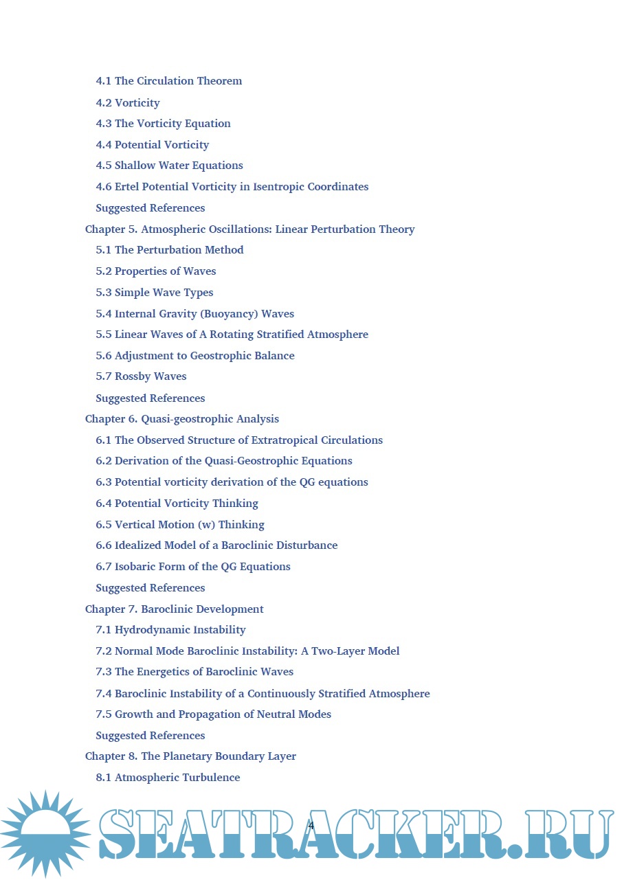 Description: Dynamic meteorology is the study of motions in the Earth’s atmosphere, associated with weather and climate. These motions organize into structured circulation features with visible and measurable effects on wind, temperature, clouds, and precipitation patterns. In recent years dynamic meteorology has made great progress and has greatly increased its scope. This fifth edition of a fundamental textbook presents a clear explanation of the key dynamical principles of meteorology and storm dynamics, discusses climate dynamics and global change, and contains end-of-chapter problems. The book is aimed to undergraduate and graduate students in the atmospheric sciences, practitioners in the field, and those who want a definitive, and accessible, introduction to the subject matter. Chapters 1 - 4 deal with fundamentals, chapter 5 is on atmosphere's oscillations and perturbation theory. Chapters 6 - 8 discuss quasi-geostrophic analysis, turbulence and stability, while chapters 9 - 12 are on general and particular circulation(s).