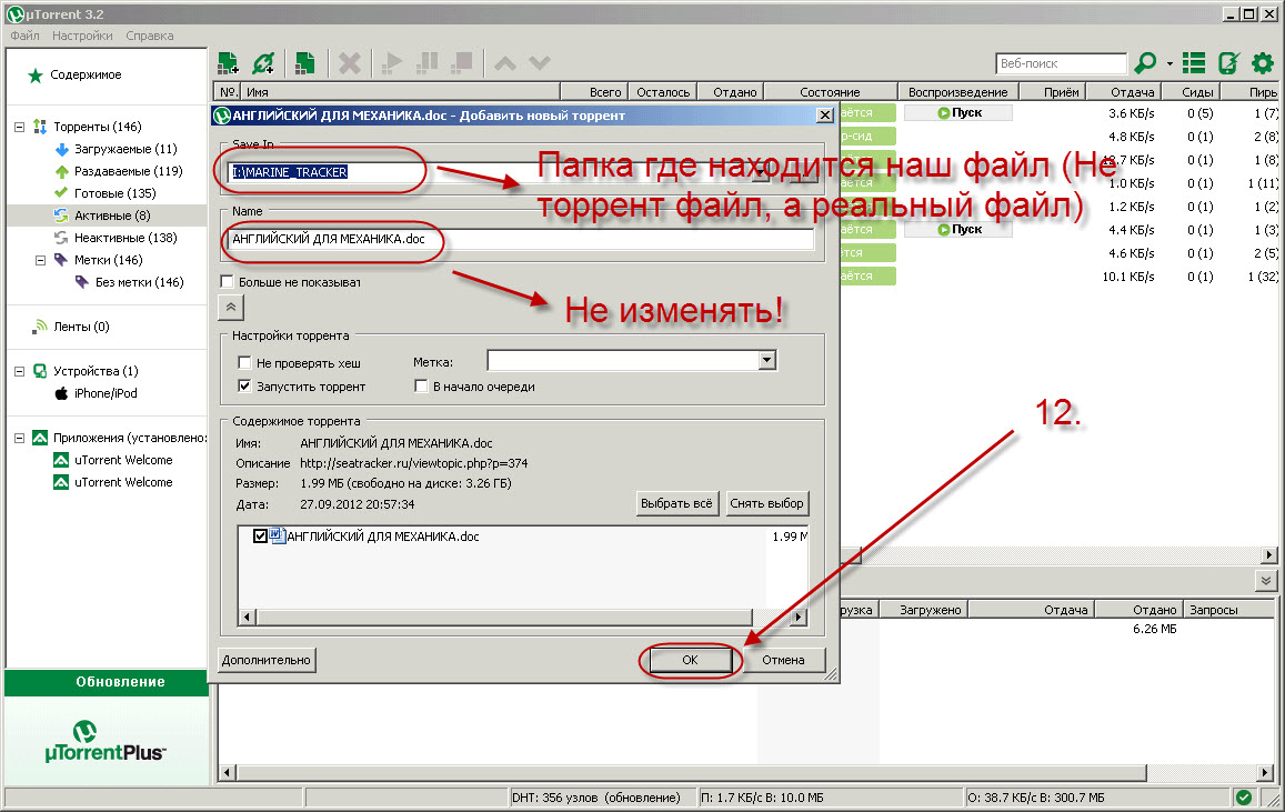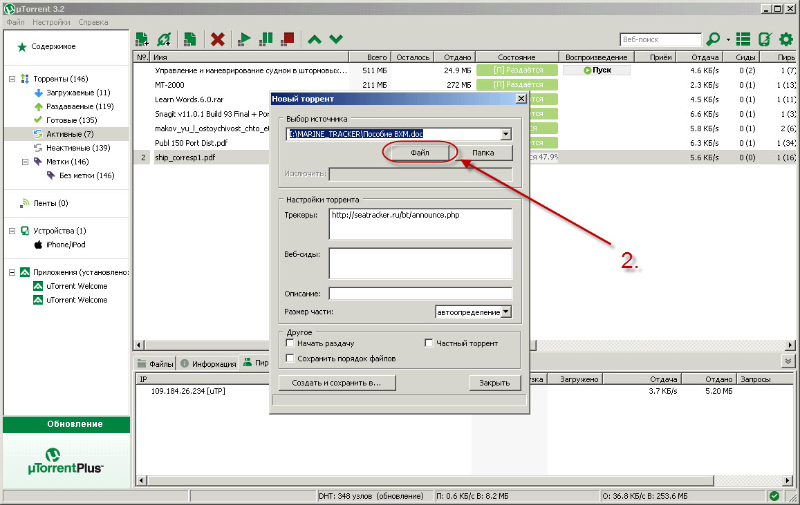 Создание торрент файла через программу uTorrent