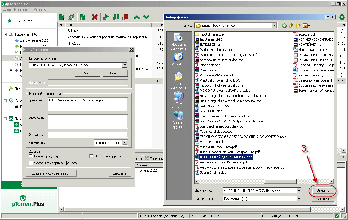 Fill in maximum info to all possible fields, and in the end we choose our created torrent file with the extension *.torrent