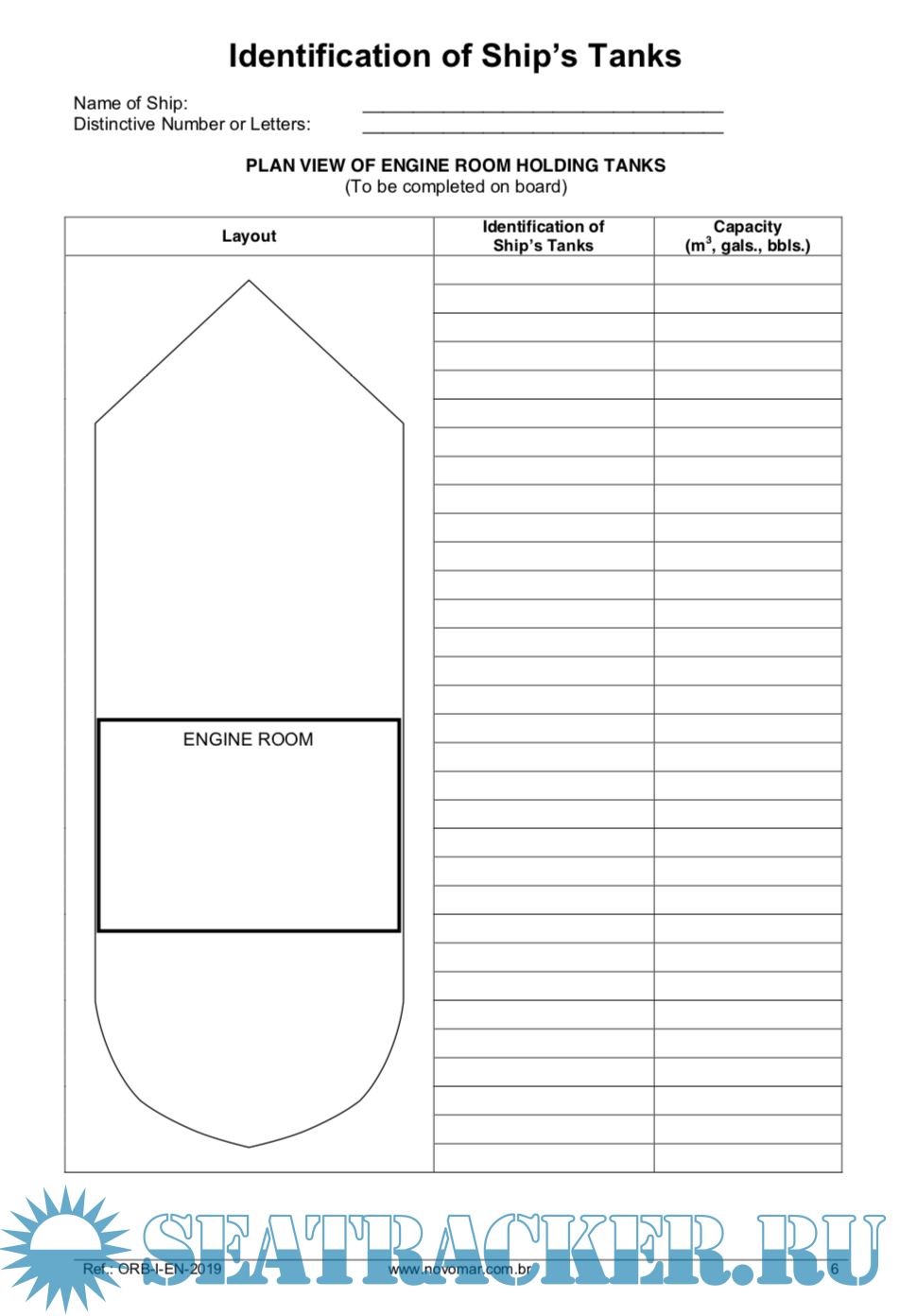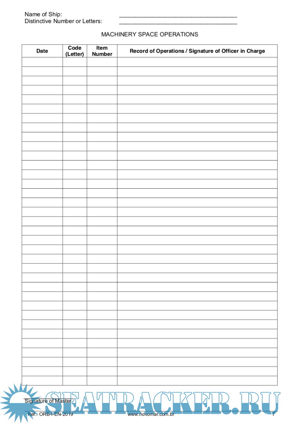 Year: 2019 Language: english Author: Novomar Assesoria Empresarial Ltda Genre: Documentation Publisher: Novomar Assesoria Empresarial Ltda Format: PDF Quality: eBook Pages count: 125 Description: Each oil tanker of 150 gross tons and above, every ship of 400 gross tons and above other than oil tankers, and manned fixed or floating drilling rig or other platform shall maintain an Oil Record Book Part I (Machinery Space Operations). The following pages of this section show a comprehensive list of items of machinery space operations which are, when appropriate, to be recorded in the Oil Record Book Part I (Machinery Space Operations) in accordance with regulation 17 of Annex I to MARPOL 73/78. The items have been grouped into operational sections, each of which is denoted by a letter Code. When making entries in the Oil Record Book Part I, the date, operational code, and item number shall be inserted in the appropriate columns and the required particulars shall be recorded in chronological order as they have been executed on board. Each operation shall be fully recorded without delay so that all the entries in the book appropriate to that operation are completed. Each operation should be dated in the dd- MONTH-yyyy format (e.g. 20- JAN-2011). Each Completed operation shall be entered and signed by the officer/person or officers/persons in charge of the operations concerned and each completed page shall be signed by the master of the ship.