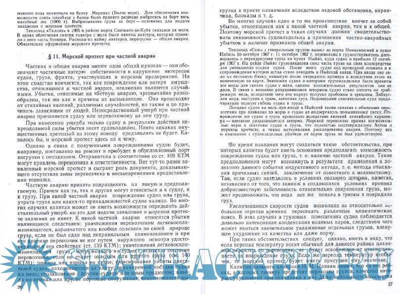 Описание: На основе нормативного, научного и практического материала изложены значение морского протеста, особенности этого процессуального документа. Разъяснен, порядок подготовки, заявления и оформления морского протеста в СССР, так как только точное выполнение требований законодательства позволяет придать морскому протесту юридическую силу, надежно обеспечить защиту интересов судовладельца.
