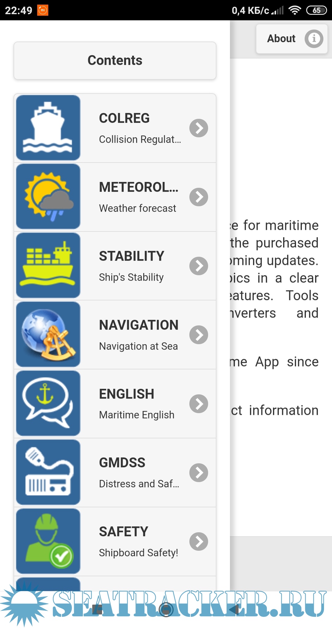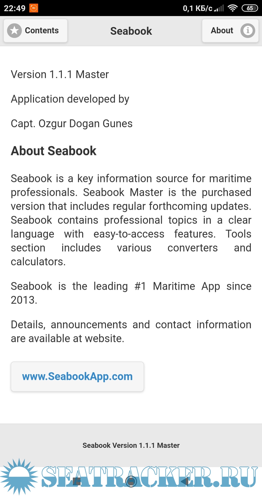 Year: 2020 Version: 1.1.1 Developer: Ozgur Dogan Platform: Android 64-bit OS compatibility: yes Localization: english Crack: Not needed Description: Seabook, ключевой источник информации для морских профессионалов, моряков и любителей Seabook is an information and knowledge source for marine professionals, sailors as well as sea enthusiasts. Seabook Master contains comprehensive and detailed information on the profession in a comfortable language with graphics. Seabook fits to use at sea with offline accessibility and best user interface. The tools help navigational and technical computations and conversations at ease. Additional info: paid version 8$