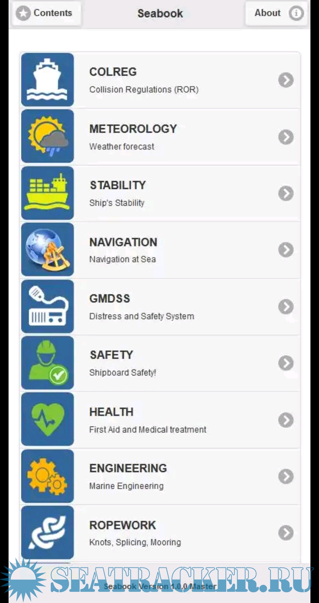 Seabook is an information and knowledge source for marine professionals, sailors as well as sea enthusiasts. Seabook Master contains comprehensive and detailed information on the profession in a comfortable language with graphics. Seabook fits to use at sea with offline accessibility and best user interface. The tools help navigational and technical computations and conversations at ease.