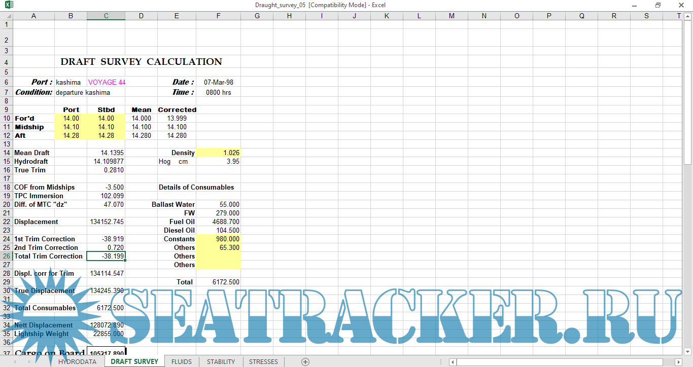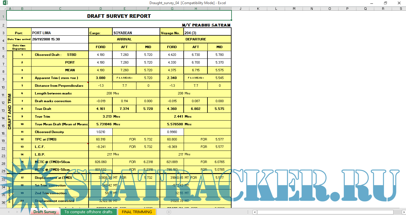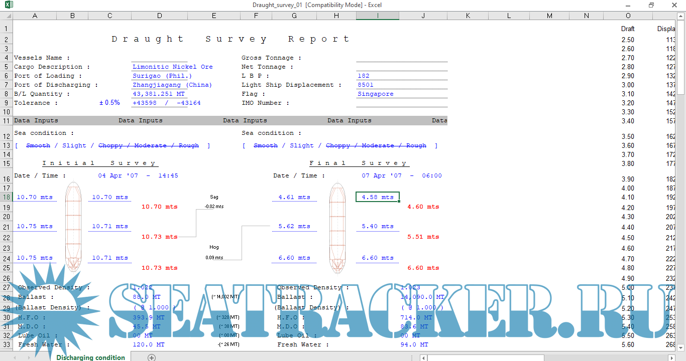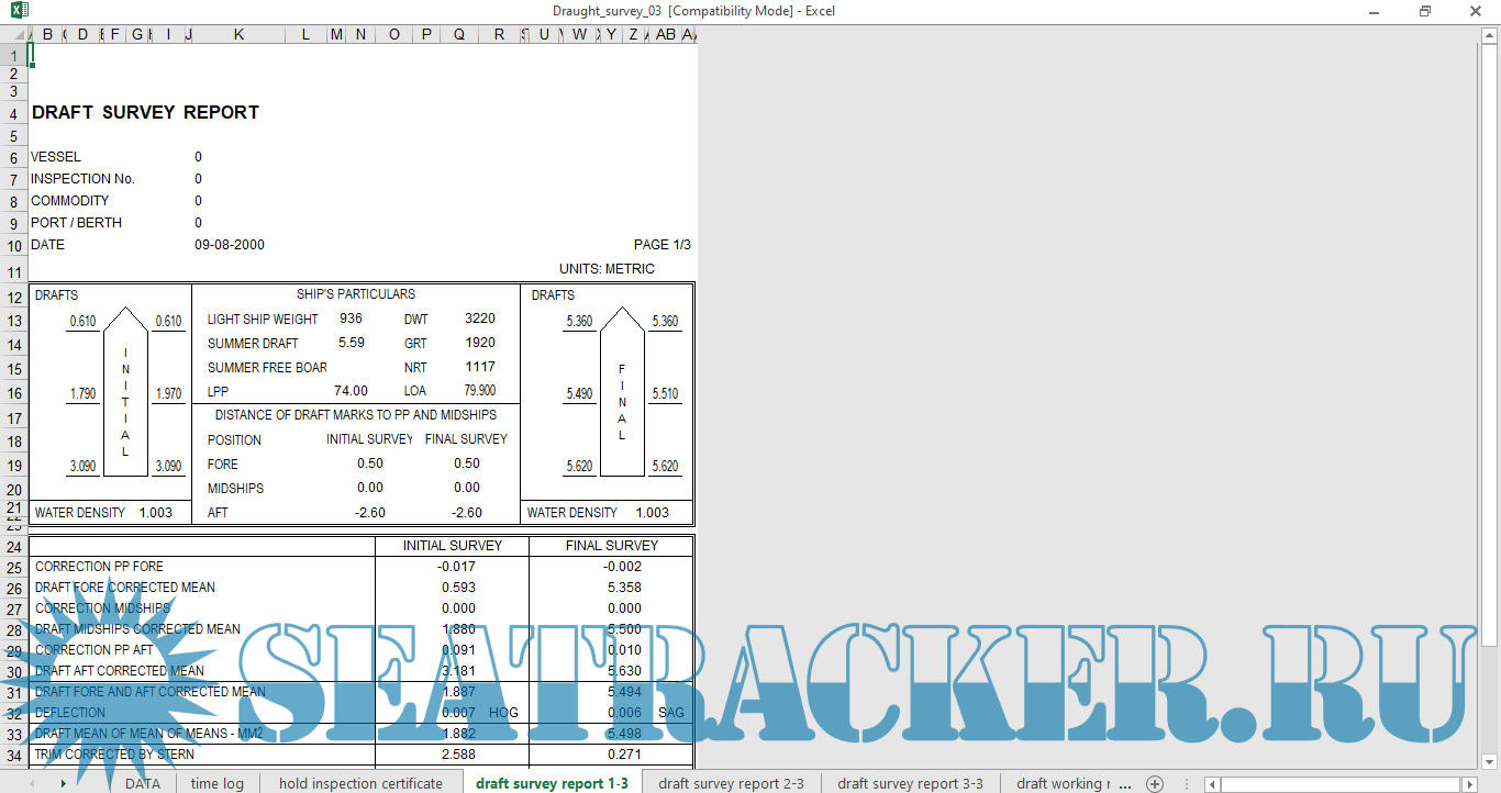 Draft Survey Calculations in MS Excel spreadsheets - Alexx [201x, XLS]