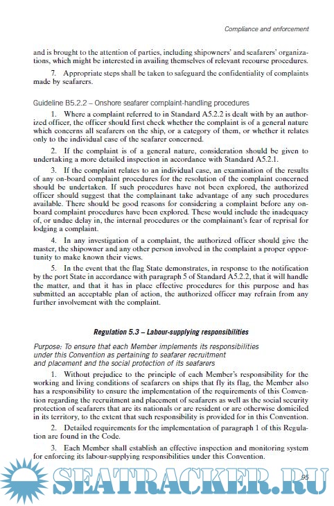 Year: 2019 Language: english Author: Internatioanl Labour Conference Genre: Convention (rules) Publisher: Internatioanl Labour Conference Format: PDF Quality: eBook Pages count: 120 Description: The Maritime Labour Convention comprises three different but related parts: The Articles, The Regulations & The Code. The Articles and Regulations set out the core rights and principles and the basic obligations of Members ratifying the Convention. The Code contains the details for the implementation of the Regulations. It comprises Part A (mandatory Standards) and Part B (non mandatory guidelines). The Regulations and the Code are organized into general areas under Five titles: Title 1: Minimum requirements for seafarers to work on a ship. Title 2: Conditions of Employment. Title 3: Accomodation, recreational facilities, food and catering. Title 4: Health protection, medical care, welfare and social security protection. Title 5: Compliance and enforcement. Additional info: Consolidated text established by the International Labour Office, including the Amendments of 2014 & 2016 to the Code of the Convention.