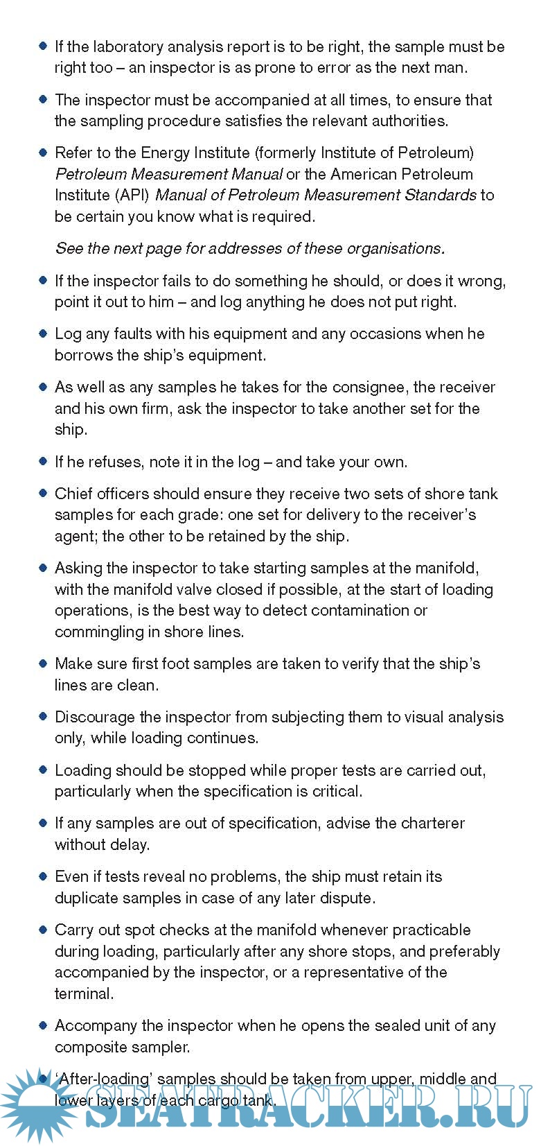 Description: The publication dedicated to the prevention of the claims associated with the contamination of the tanker cargo. The booklet starts with the information about the recognition of the main contamination causes both shoreside and shipboard.