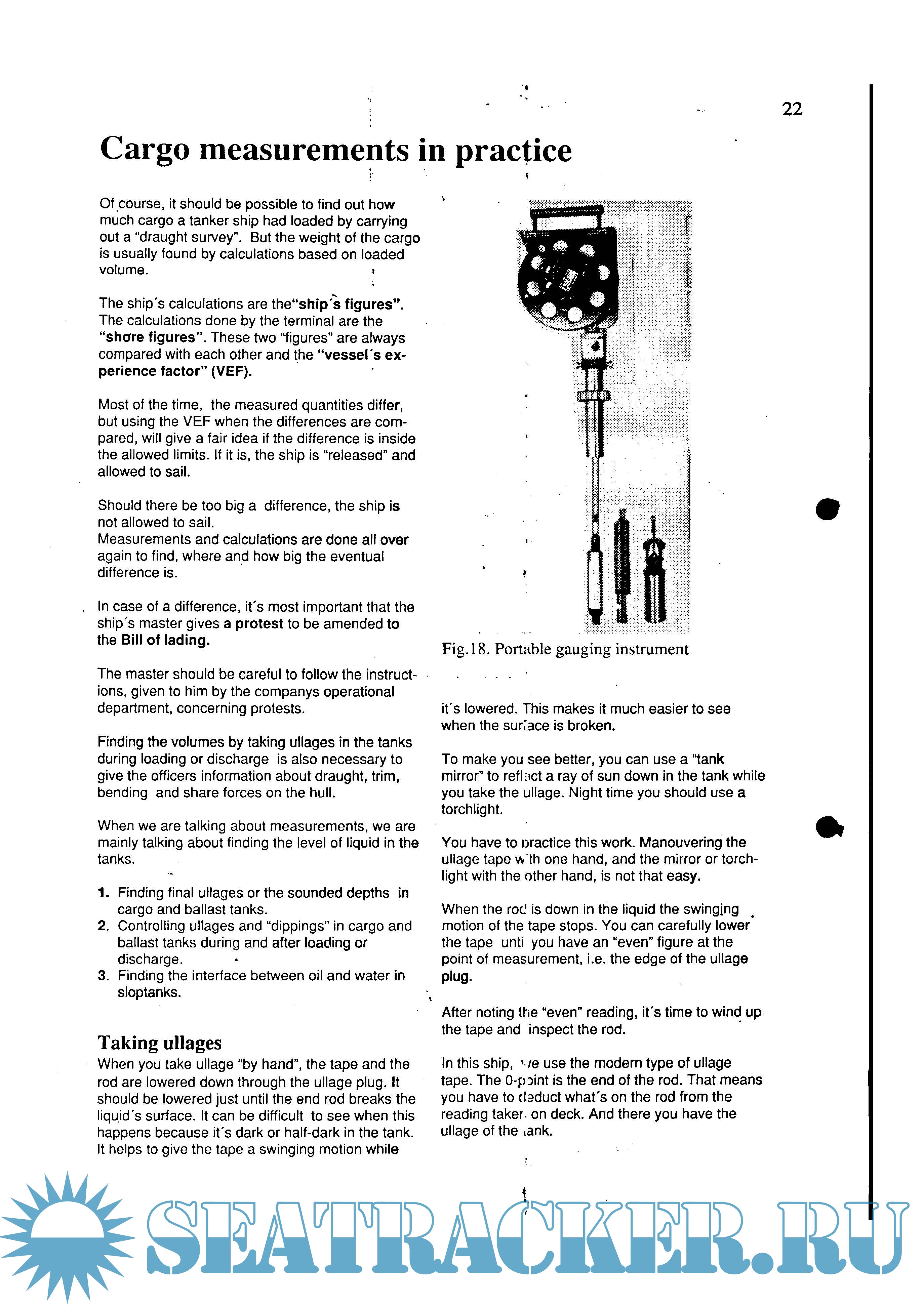 Description: This ultimate goal of the authors of the present training manual was to provide the readers with the knowledge about how they should measure and calculate petroleum cargoes, how they should use the tools and instruments used on board their ships, and how they should understand and value the results obtained from instruments used on board. Finally, we would likt to suggest some good and practical routines to be used on board your ship when measuring cargo.