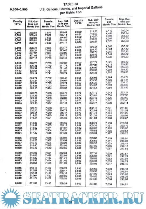 Description: Selected pages of ASTM tables as permitted by the Directorate General of Shipping, India for examination purpose only.