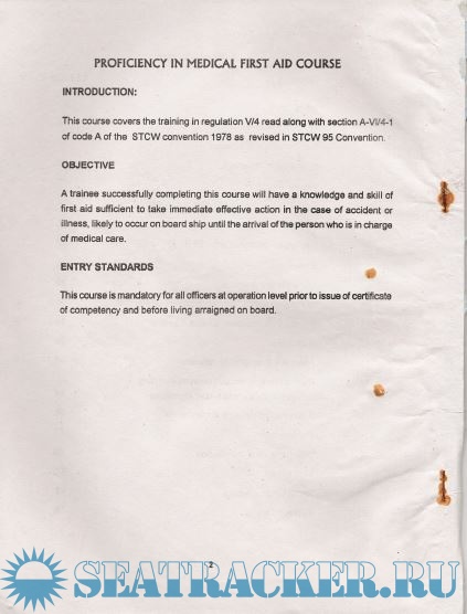 Description: A trainee successfully completing this course will have a knowledge and skill of first aid sufficient to take immediate effective action in the case of accident or illness, likely to occur on board ship until the arrival of a person who is in charge of medical care.