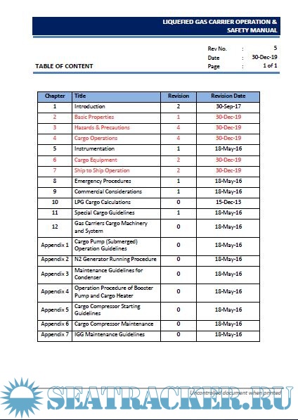 Description: This Manual is issued to assist all personnel involved in the operation of Liquefied Gas Carriers carrying Liquefied Petroleum and Liquefied Chemical Gases, to carry out their duties in a safe and efficient manner.
