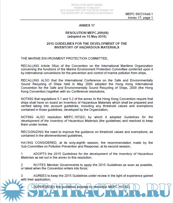 RESOLUTION MEPC.269(68)Adopted on 15 May 2015, 2015 Guidelines For The Development Of The Inventory Of Hazardous Materials
