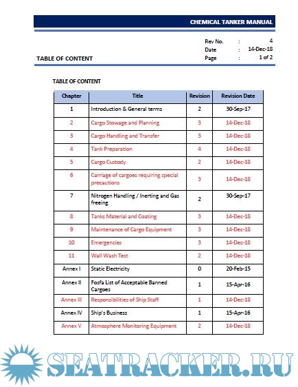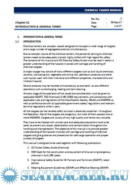Description: This Manual is issued to assist all personnel involved in the operation of Chemical Tankers which are complex vessels designed to transport a wide range of cargoesand a large number of segregated products simultaneously.