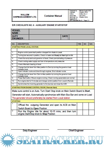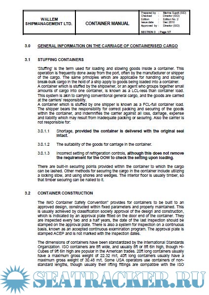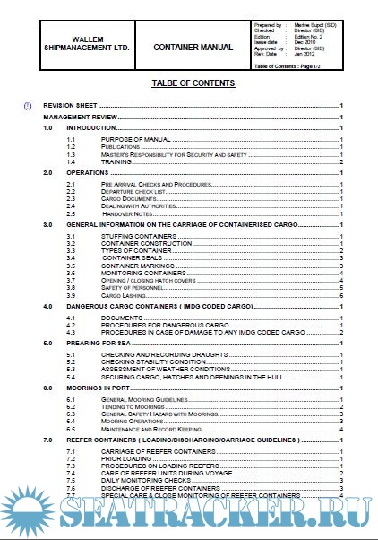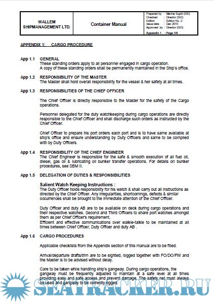 Year: 2012 Language: english Author: Wallem ShipManagement Ltd Genre: Manual Publisher: Wallem ShipManagement Ltd Edition: 2 Format: PDF Quality: eBook Pages count: 68 Description: This Manual details the policies and measures adopted by the Company for safe and efficient operation of Container ships under its management and control.