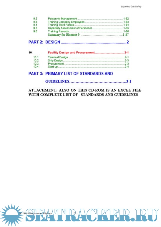 The Guide is designed not as a work of reference but as an operational tool, to be used as part of the management process in gas shipping and marine terminals handling liquefied gas cargoes. Hence, it provides operators with a common framework, endorsed by all members of the Society of International Gas Tankers and Terminal Operators, for the systematic review of operational management at their facilities. Used regularly, as part of established management processes, it will provide assurance for all concerned parties of the integrity of operations and be indicative of a ship, shipping company or terminal being operated to the highest international standards.