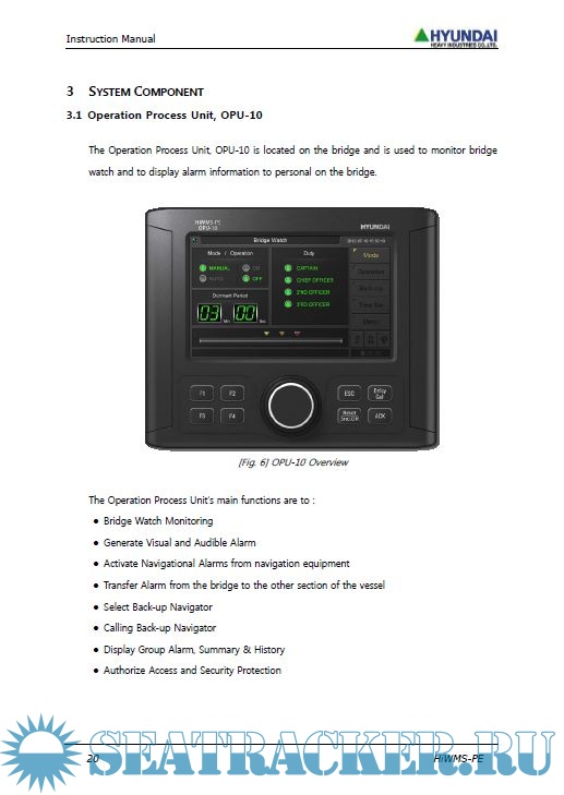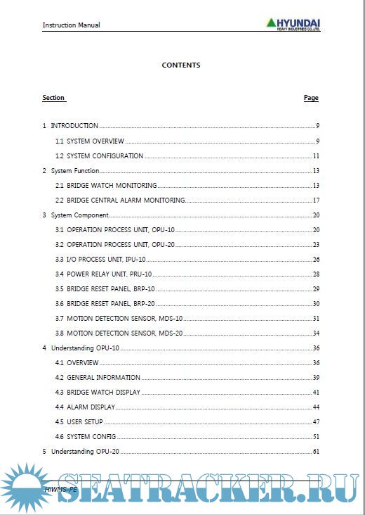 Description: This document describes the functionality and the guidance of operation and maintenance for bridge navigational watch alarm monitoring system, HiWMS-PE.