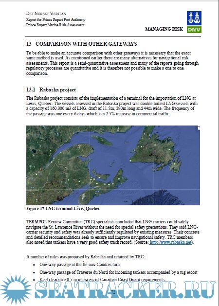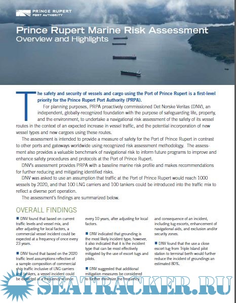 It is a semi-quantitative assessment looking at the risks associated with a potential introduction of 100 crude oil tankers and 100 LNG carriers annually to and from a potential terminal at Ridley Island, British Colombia.