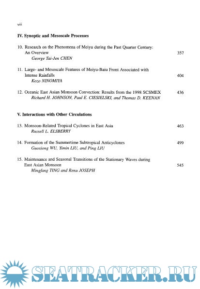 under the past chair, Dr. Greg Holland, and the present chair, Prof. Lianshou Chen, organized the International Panel for East Asian Monsoon under the leadership of Prof. Shiyan Tao. The book would not have been possible without the efforts of the many reviewers. Besides the members of the Editorial Board of the World Scientific Series on Meteorology of East Asia who served as reviewers, the book benefited tremendously from the following individuals who provided critical reviews of individual chapters: Drs. Hanna Annamalai, Johnny Chan, Russ Elsberry, Bill Frank, Bob Haney, Harry Hendon, Brian Hoskins, Dick Johnson, T. N. Krishnamurti, Bill Kuo, Bill Kyle, Mark Lander, Peggy LeMone, Jerry Meehl, Takio Murakami, Julia Slingo, Wei-Kuo Tao, Mingfang Ting, Chuck Wash, and Song Yang. The technical editing was performed by Ms. Hway-Jen Chen. This work was supported in part by the National Science Foundation under Grant ATM-0101135, the National Oceanic and Atmospheric Administration under Grant NA01AANRG0011, and the Office of Naval Research Marine Meteorology Program.