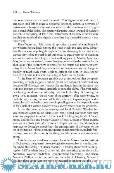 Year: 2002 Language: english Author: John D. Cox Publisher: John Wiley & Sons Inc. ISBN: 0-471-38108-X Format: PDF Quality: eBook Pages count: 258 Description: Weather forecasting has become a kind of appliance science, part of the electric rhythm of life, absorbed and applied without a second thought to the mundane questions of personal comfort and convenience. How cold will it be today? Or tomorrow? Or how hot? Will I need a sweater? An umbrella? A hat? Depending on the medium, its presentation can be brief and stylized to the point of wordless icons, or extended and elaborate, colorfully portrayed with animated and entertaining visual effects. These productions relate knowledge that is different from the rest of the daily information stream. This is the future, the telling of atmospheric motions and events that have not happened yet. Weather forecasting is the product of meteorological science that comes from the edge of our most advanced capability, quantifying circumstances of turbulence and chaos that are at the limits of probability. It is the numerical modeling output of some of the most powerful computers on the planet. This knowledge of the future is costly and difficult to acquire. It is so costly, in fact, its raw material so extensive, its reach so global, and its processing so computationally demanding that only governments can provide it. Notwithstanding all of this artificial intelligence, the science of forecasting weather is a triumph of human intelligence—the work of people. While modern weather science is the work of many, it is founded on the work of a relative few. These are the stories of some of the men who discovered how the atmosphere works and how to foretell its behavior. Their science has saved and continues to save many lives. An ancient dream of accurately predicting weather has been fulfilled. The storm watchers deserve to be remembered, many of them as heroes.