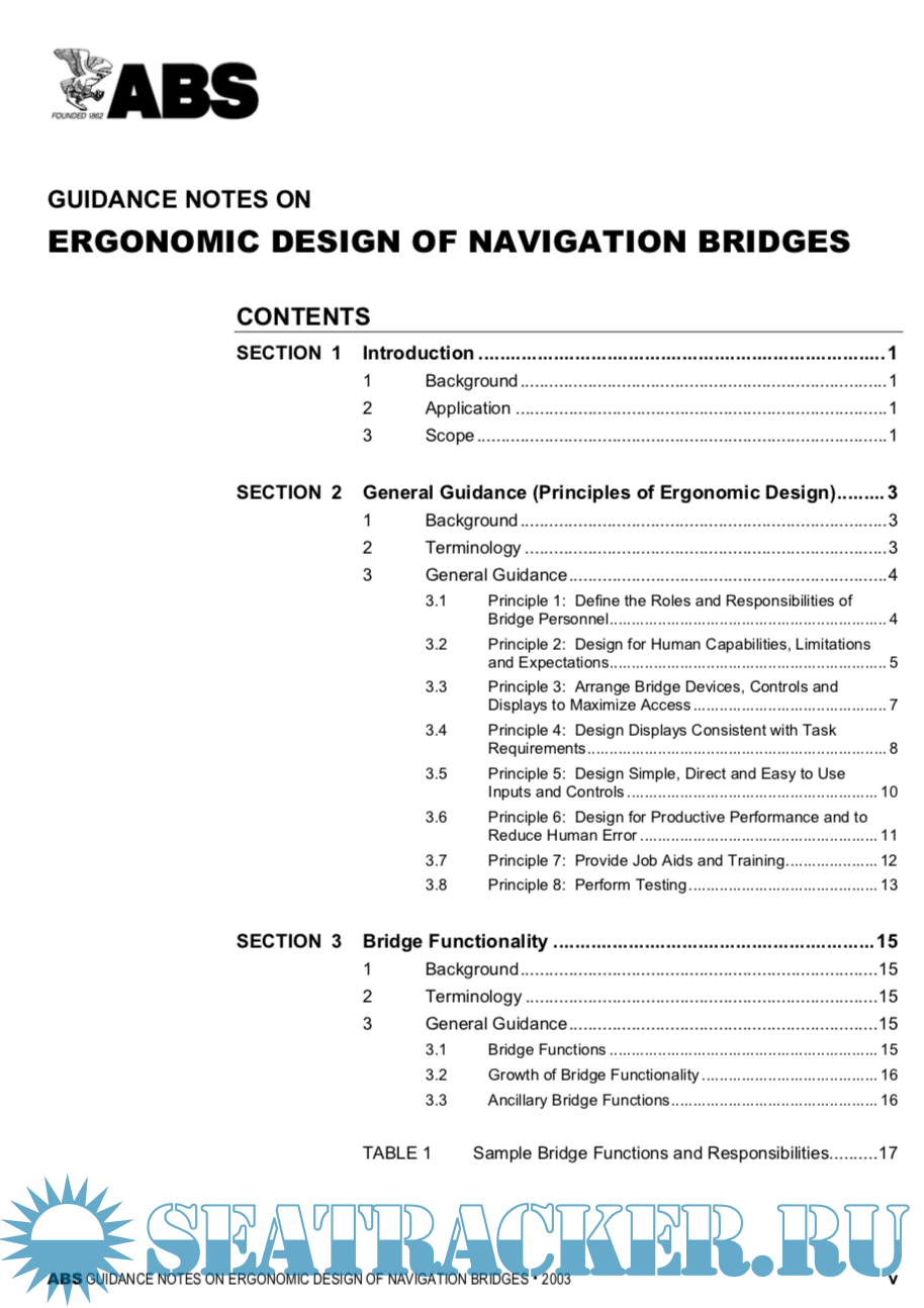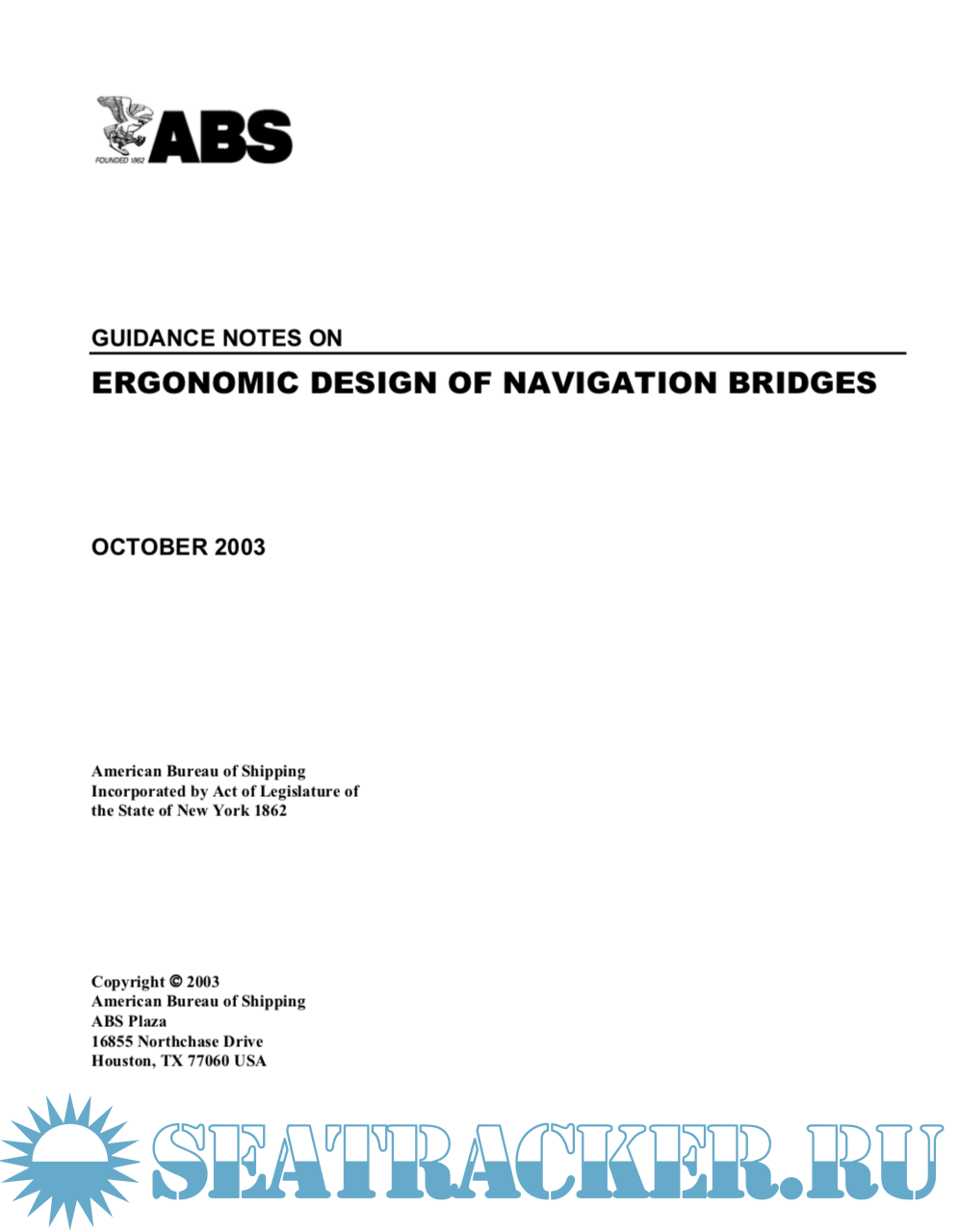 That Guide also recommends that the design of bridges is to be based on sound ergonomic principles. To support the bridge design and engineering community in promulgating these principles, these ABS Guidance Notes for the Ergonomic Design of Navigation Bridges have been developed.