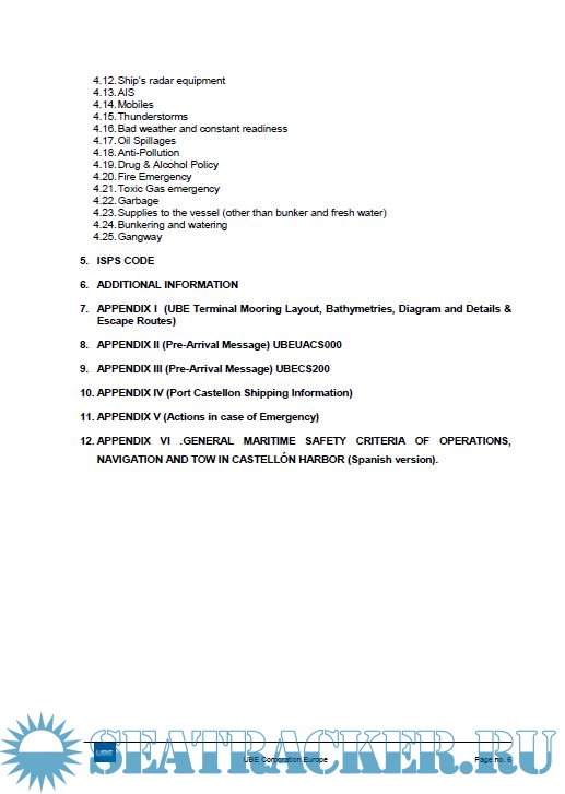 Description: This booklet is intended to acquaint Masters, Owners and Operators of vessels with the general conditions, terminal facilities, services available and safety requirements at the marine facilities of UBE Corporation Europe.