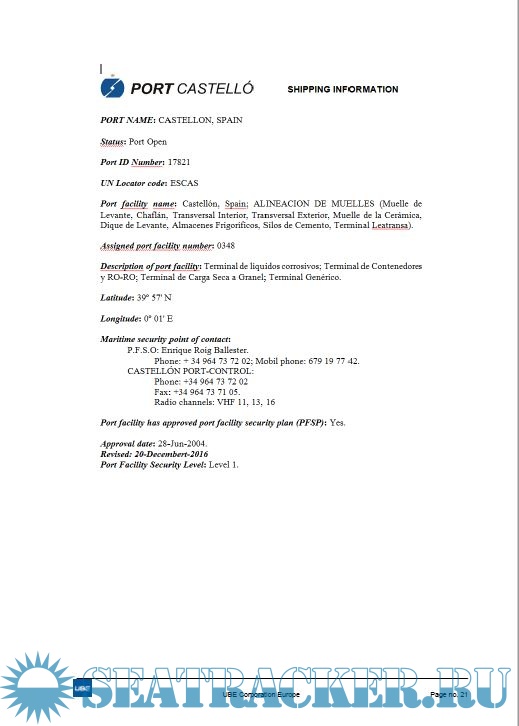 UBE Marine Terminal Handbook General Regulations Port Castellon Spain