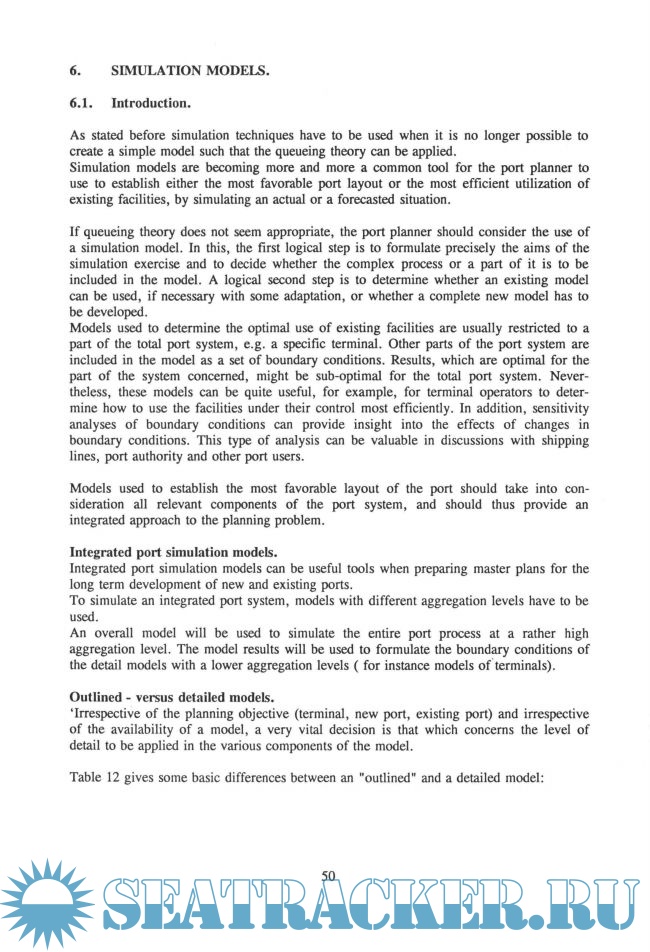 For the purpose of optimizing port facilities in relation to capacities demands port operations have to be analyzed, a process which is often facilitated by applying complex port simulation-models. However sometimes a relatively simple-empirical approach or queuing theory can be used. Concerning the choice of the method, always due attention should be paid to the local situation.