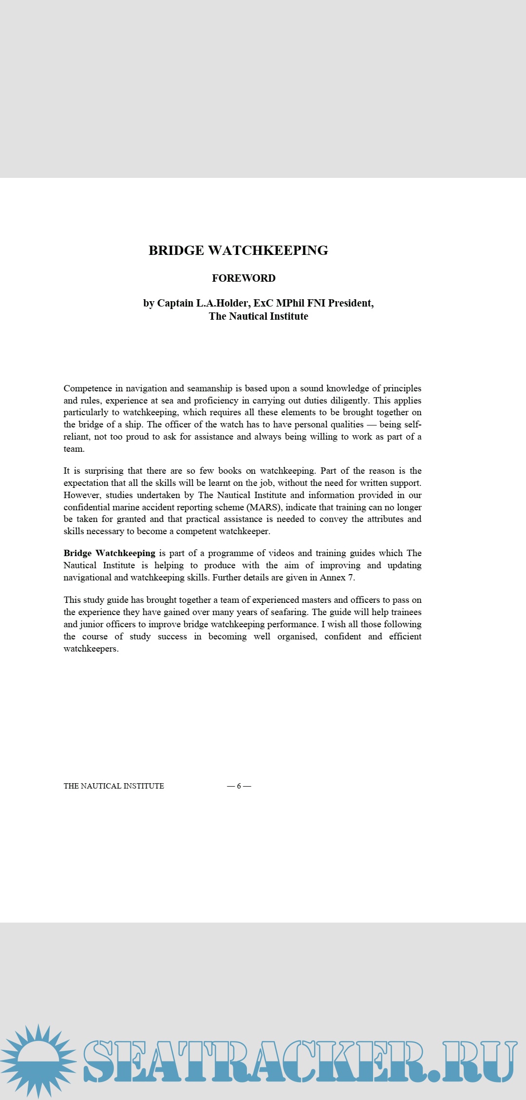 Description: Welcome to this study guide on Bridge Watchkeeping. It has been prepared in response to a