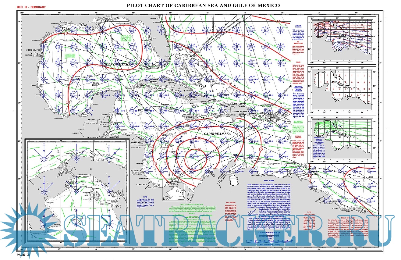 Description: The Atlas of Pilot Charts set is comprised of five volumes, each covering a specific geographic region. Each volume is an atlas of twelve pilot charts, each chart is compiled using average conditions over a single month of any given year. Pilot Charts depict averages conditions of winds, currents, temperatures, wave heights, ice limits, visibility, barometric pressure, and weather conditions. The purpose is to aid the navigator in selecting the fastest or safest routes with regards to the expected weather and ocean conditions. The charts are not intended to be used for navigation.