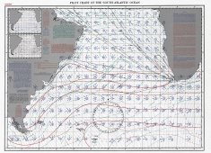 Description: The Atlas of Pilot Charts set is comprised of five volumes, each covering a specific geographic region. Each volume is an atlas of twelve pilot charts, each chart is compiled using average conditions over a single month of any given year. Pilot Charts depict averages conditions of winds, currents, temperatures, wave heights, ice limits, visibility, barometric pressure, and weather conditions. The purpose is to aid the navigator in selecting the fastest or safest routes with regards to the expected weather and ocean conditions. The charts are not intended to be used for navigation.