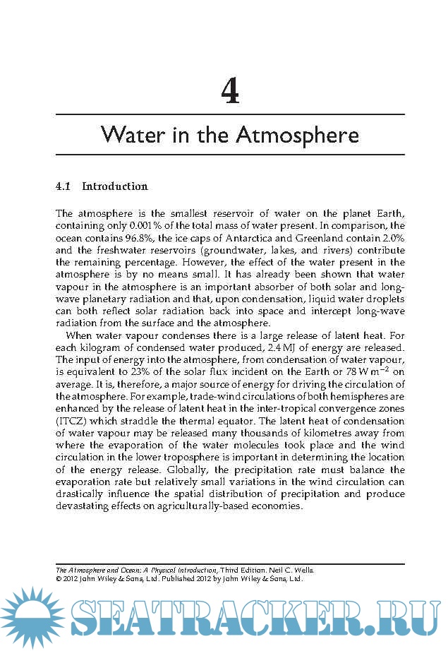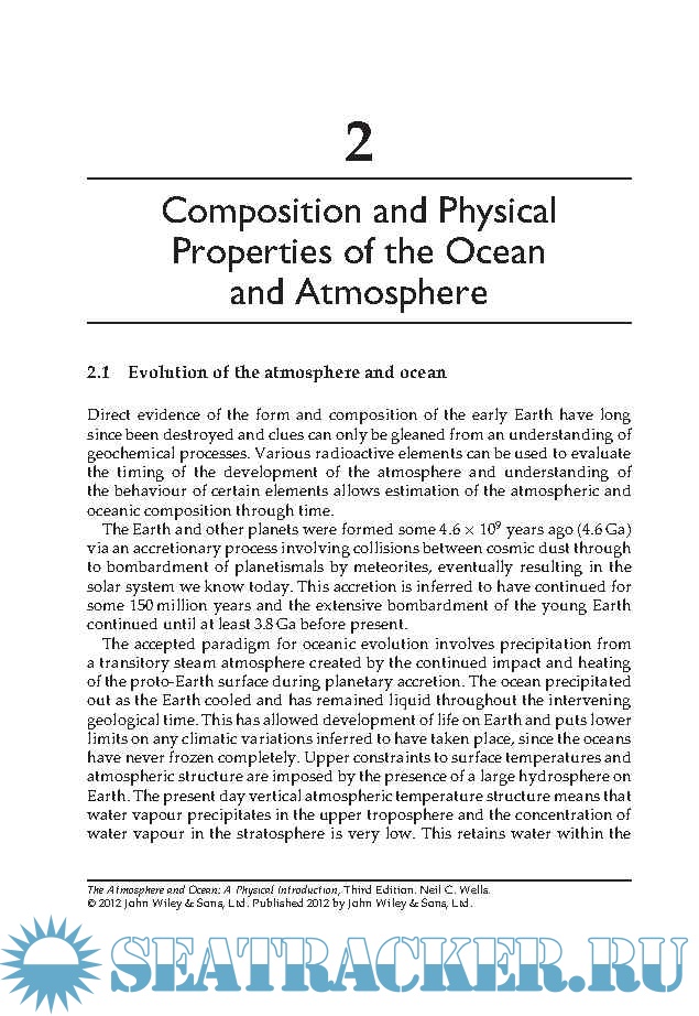 Year: 2012 Language: english Author: Neil C. Wells Genre: Handbook Publisher: John Wiley & Sons, Ltd. ISBN: 978-0-470-69469-5 Format: PDF Quality: eBook Pages count: 442 Description: The Atmosphere and Ocean is a fully revised and updated student friendly physical introduction to the atmosphere and ocean. Now in its Third Edition, the book continues to provide students with an accessible description of the atmosphere and ocean with emphasis on their physical properties and inter-dependence. Clearly structured throughout, the book demonstrates that the atmosphere and ocean are both subject to the influence of the earth's rotation and therefore they have a common dynamical basis. The author clearly demonstrates the fundamental differences between the two environments and provides the reader with a much better understanding of the atmosphere and the ocean and an appreciation of their closest interactive relationship. There have been many developments in the field over the past ten years and this latest edition of a highly successful textbook brings together new material on the ocean-atmosphere system and climate, the observed circulation of the atmosphere and ocean and radiation in the atmosphere and ocean. - Fully revised and updated 3rd Edition of student friendly physical introduction to the atmosphere and ocean. - Now includes new chapters on observed circulation of the atmosphere and ocean, energy flows in the ocean atmosphere system, modelling the ocean and atmosphere, the ocean atmosphere system and climate. - Well-structured and written in an authoritative yet accessible style suitable for 2nd and 3rd year students taking courses in meteorology, oceanography and related Earth Sciences or as an introduction for graduate students. - Emphasis placed on physical properties and inter-dependence of the ocean and climate. - Part of the RMetS (Royal Meteorological Society) book series, Advancing Weather and Climate Science