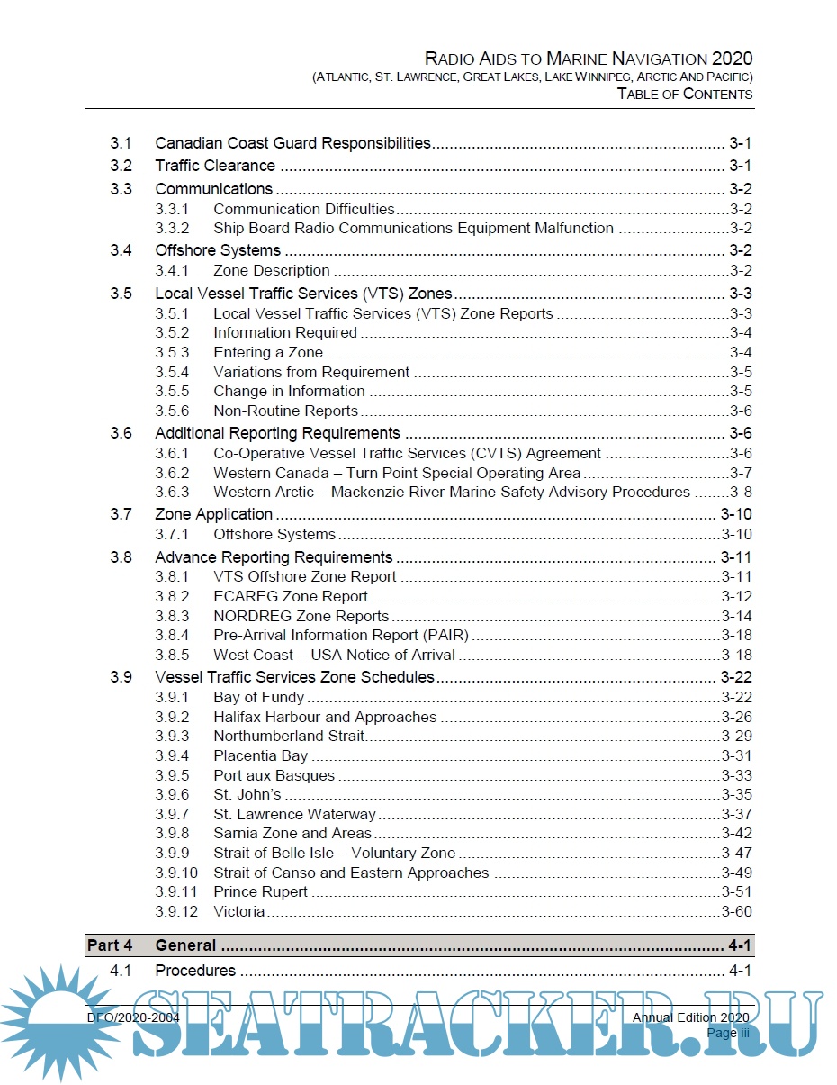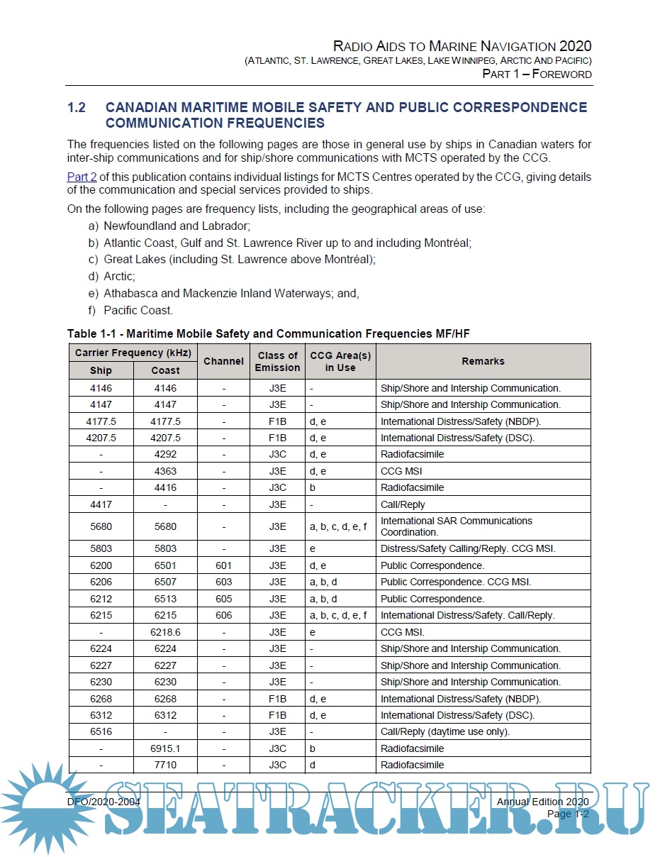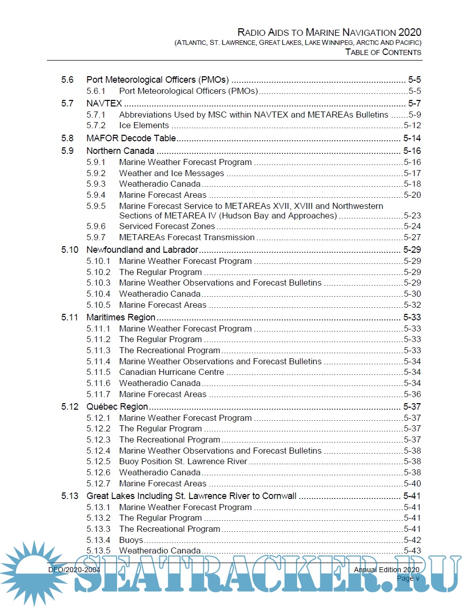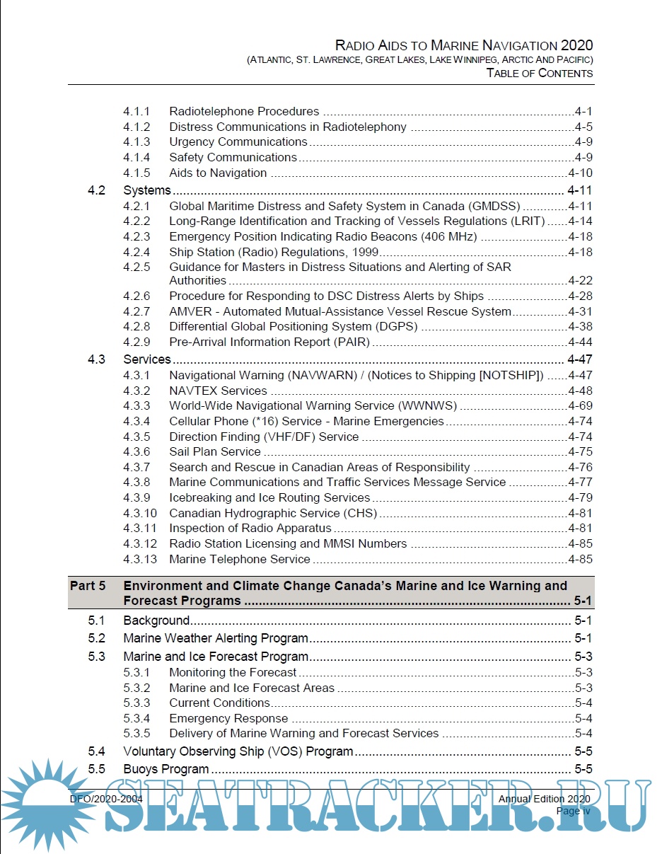 Description: The Radio Aids to Marine Navigation (RAMN - ARNM), also avaliable in French, is an annual publication, dealing with marine communications and traffic services. The relevant amendments are avaliable online, published on a monthly base, collected in an annual edition volume, and advertised by radio. Every ship station fitted on a Canadian ship or on a non-Canadian ship engaged in the coasting trade of Canada, pursuant to the Ship Station (Radio) Regulations 1999, and all ships in waters under Canadian jurisdiction, pursuant to the Charts and Nautical Publications Regulations, 1995, are required to carry the most recent edition of the Radio Aids to Marine Navigation publication.